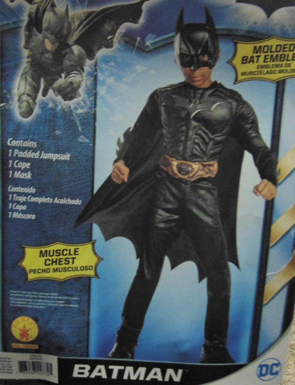 Batman Halloween Costume 4/6 Dark Knight Muscle Jumpsuit Mask Cape 3 Pc Boys