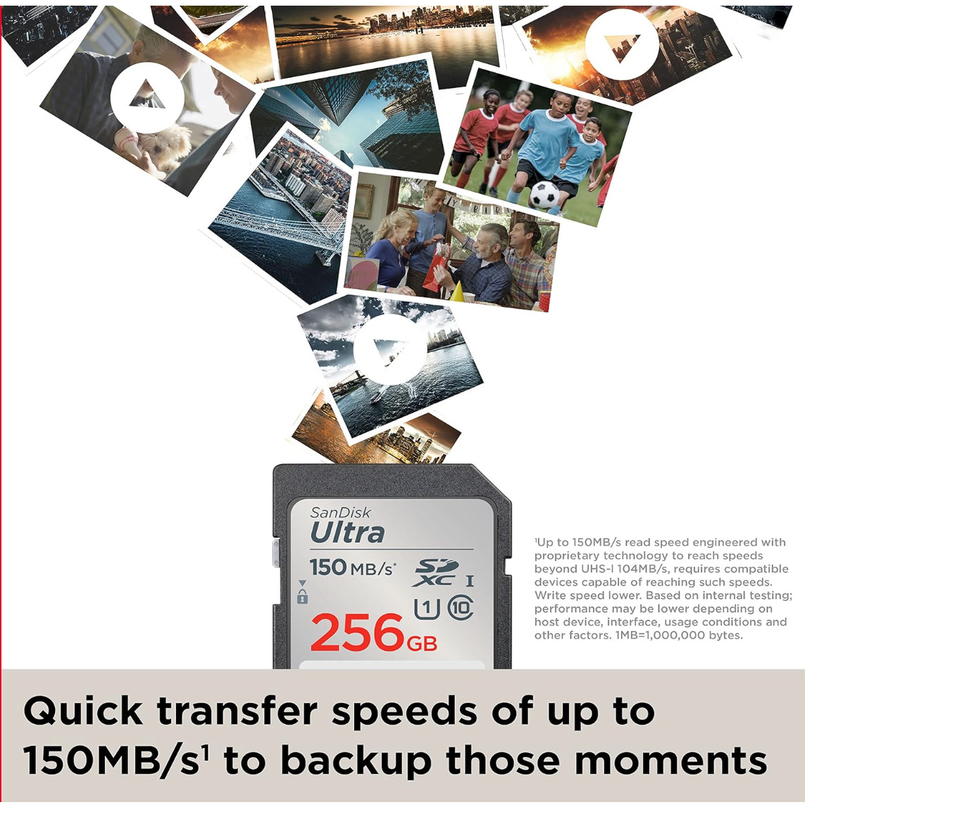 Sandisk 256GB Ultra SDXC UHS-I Memory Card - up to 150Mb/S, C10, U1, Full HD, SD