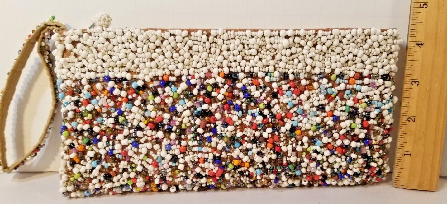 Vintage Small Clutch Purse Glass Seed beads Multicolor Boho