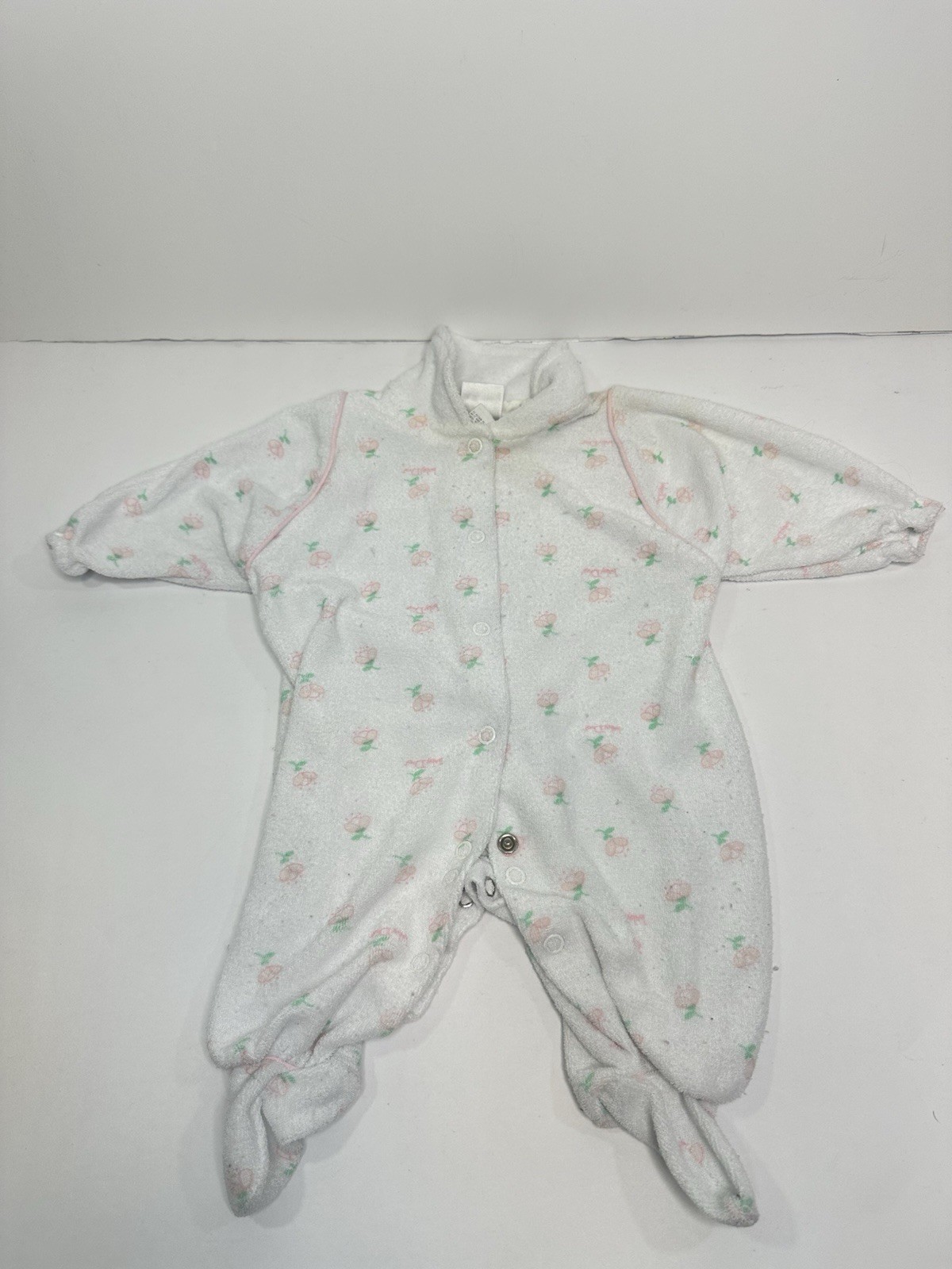 Vintage Baby Dior Infant Sleeper Small 0-11 lbs White Pink Floral Footed USA