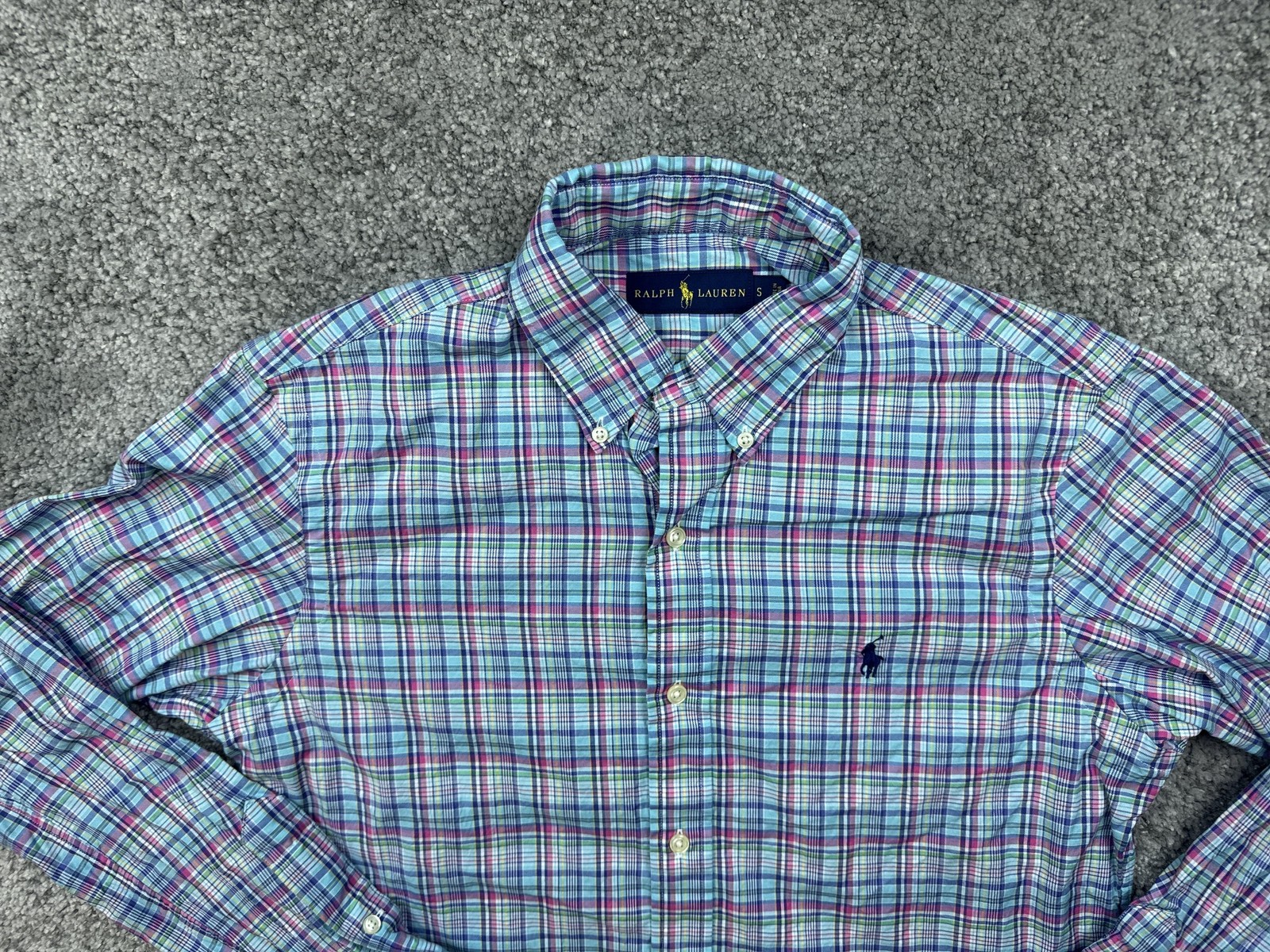 Ralph Lauren Shirt Mens Small Blue Pink Plaid Button Down Long Sleeve Pony Logo