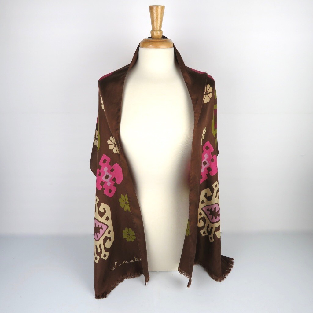 Marina D'este Silk Scarf Rectangle Tribal Brown Pink Green 68 x 16.5