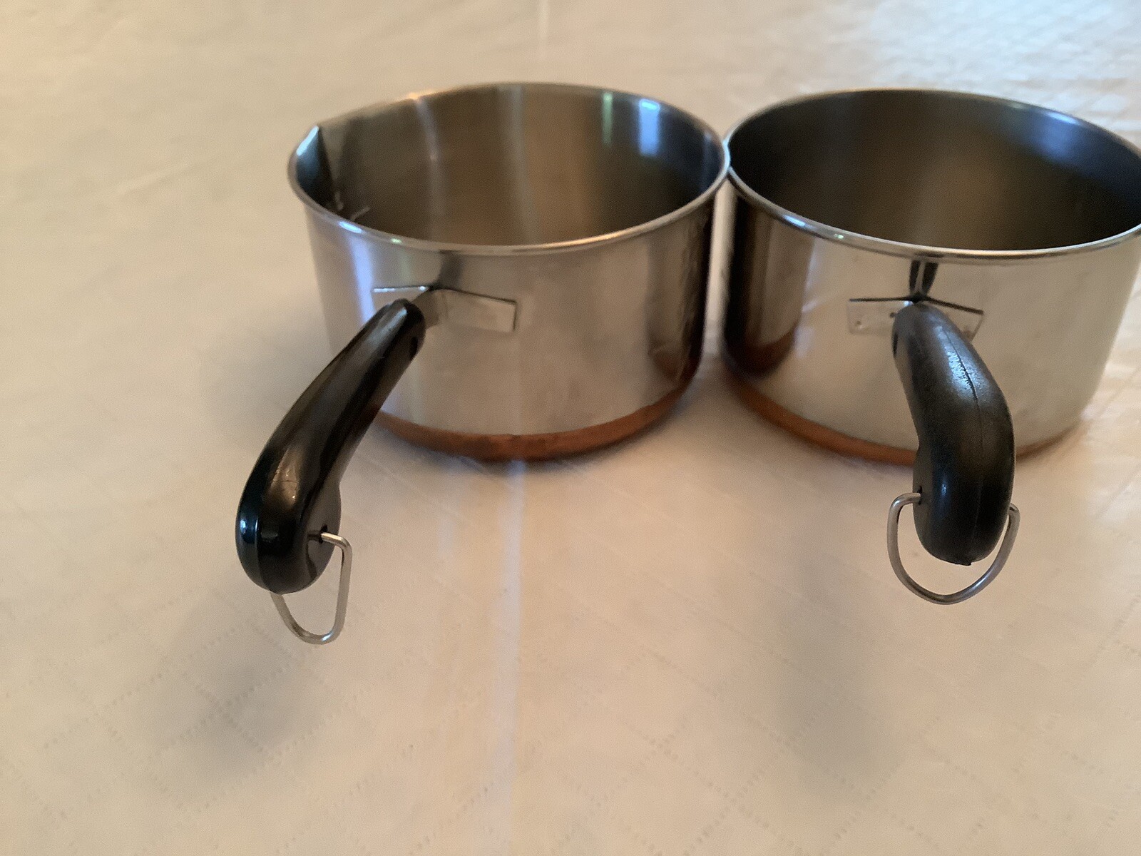 как выглядит Two Vintage Mini Toy ONE CUP Revere ware pans Copper Bottoms фото