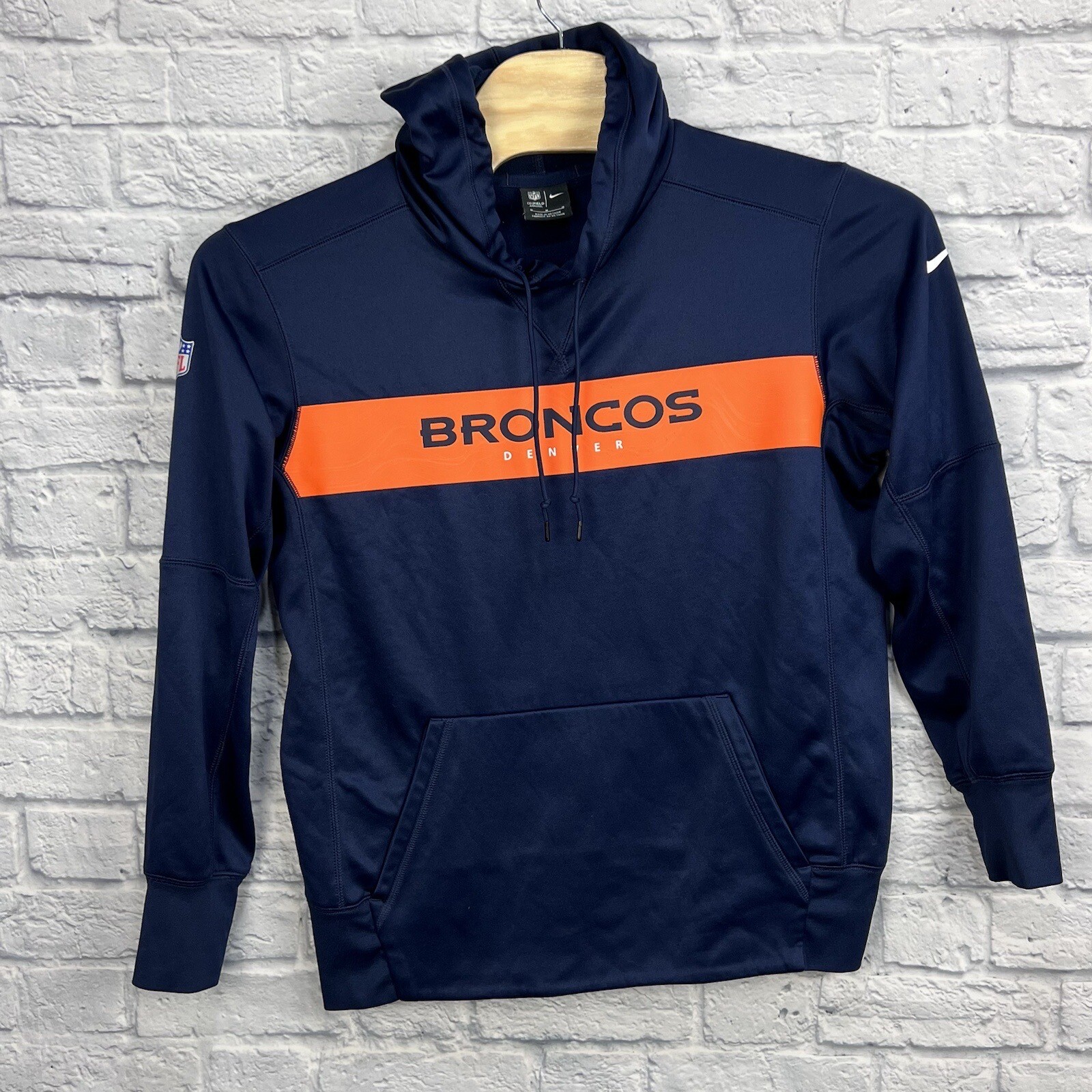 Nike NFL Denver Broncos Men s Blue Hoodie On Field Pullover Sweater Size Medium