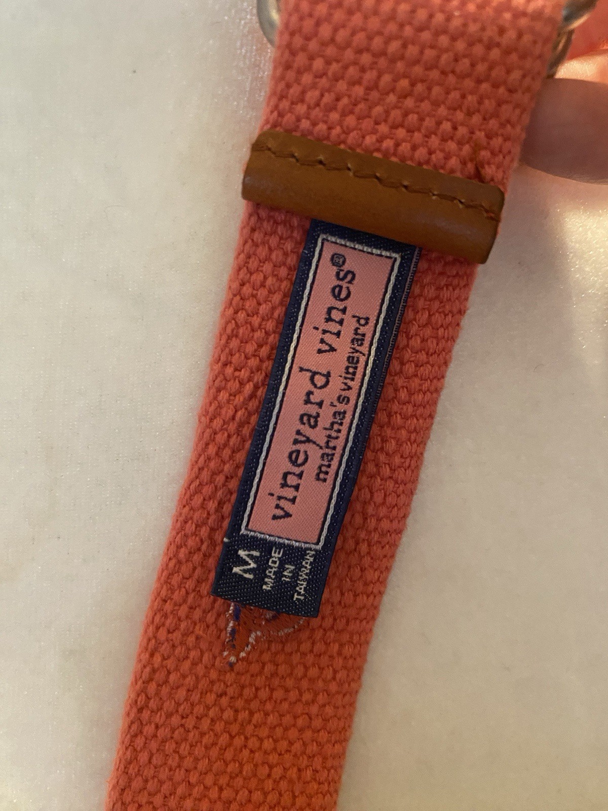 как выглядит Vineyard Vines Boys Salmon Color Whale Print Logo Cotton Belt Size Medium Preppy фото