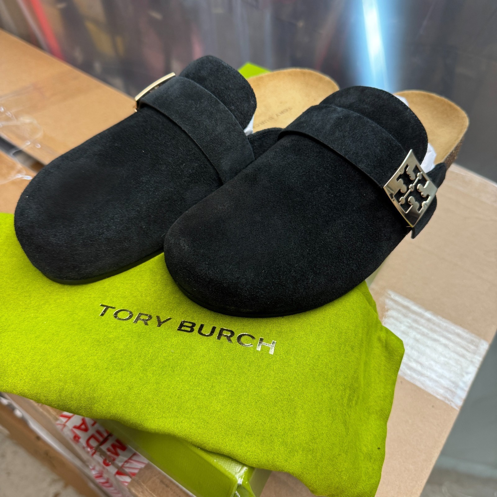 как выглядит Tory Burch Suede Mellow Mule  Black фото