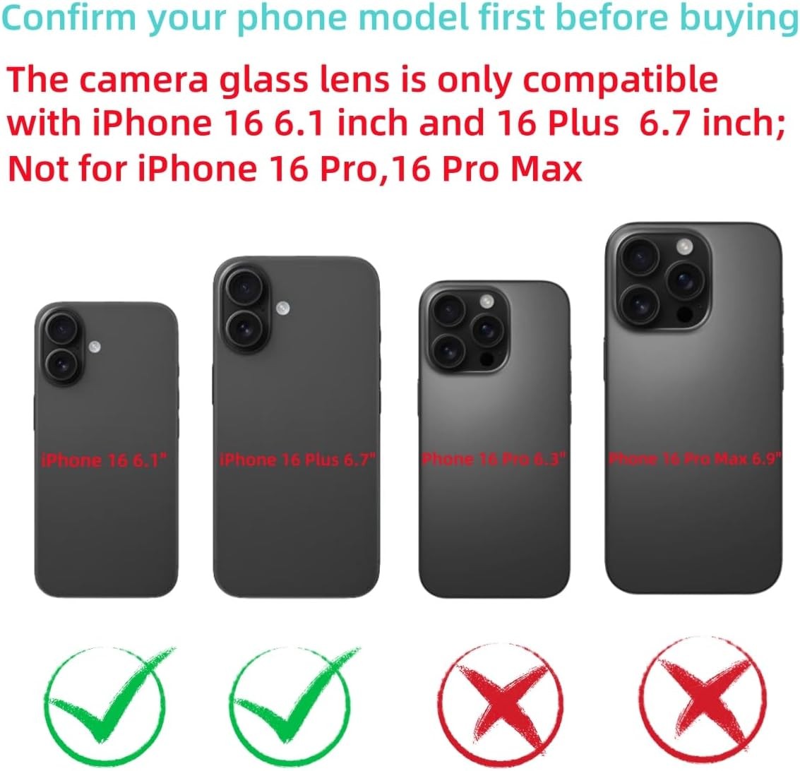 2pcs Back Rear Camera Glass Lens Replacement for iPhone 16 A 3288