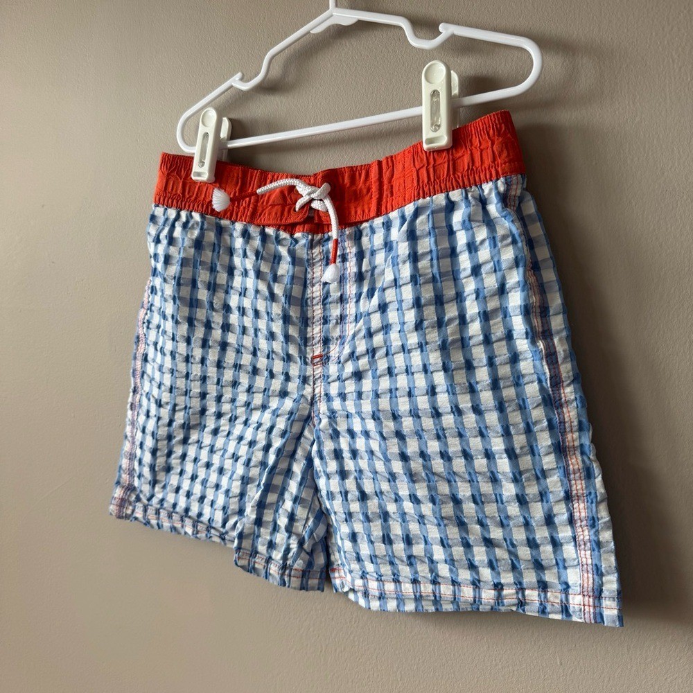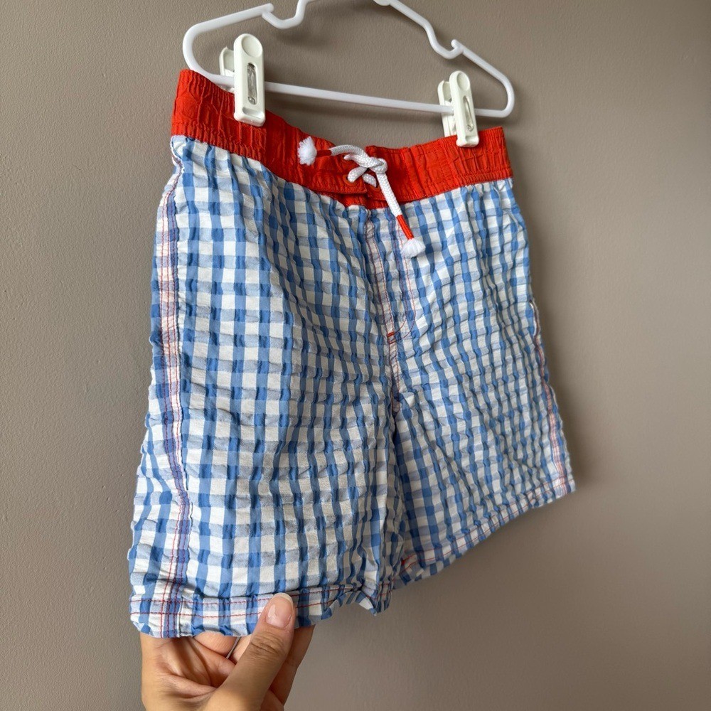 как выглядит Mini Boden Boys Blue White Gingham Plaid Swim Shorts Size Size 7-8 Years фото