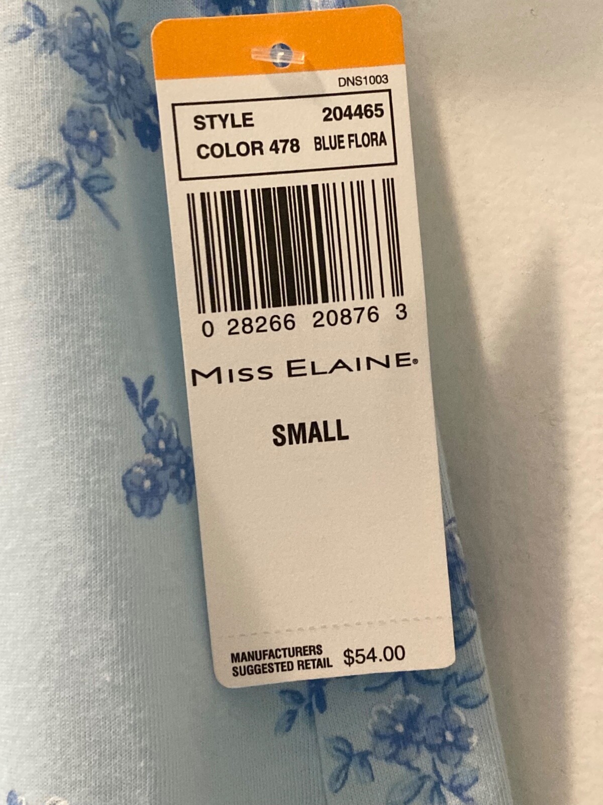 Miss Elaine NOS blue floral babydoll nightgown size small