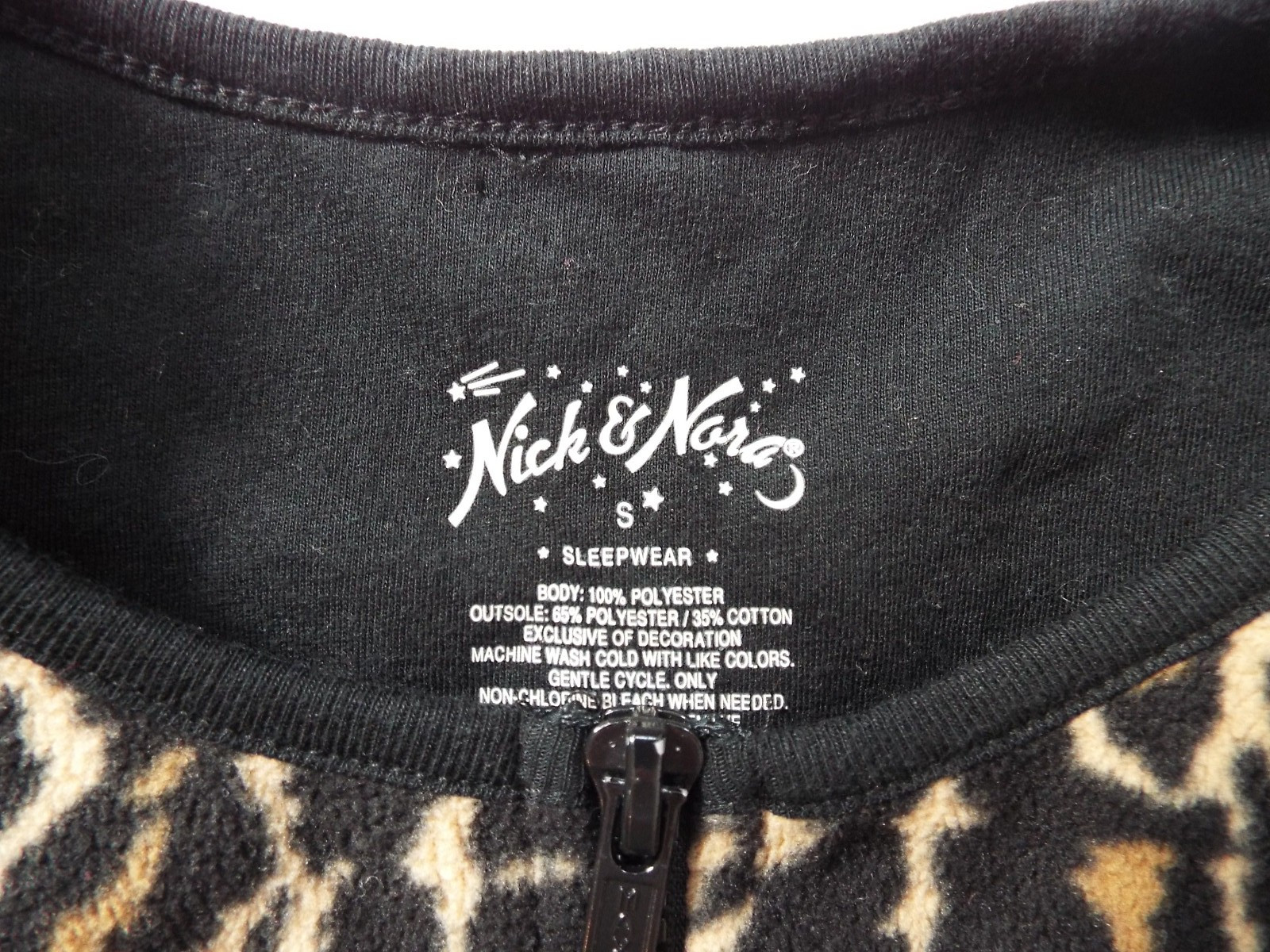 Nick Nora Women's Leopard Print Cat Footed One-Piece Pajamas Fleece Zip Small