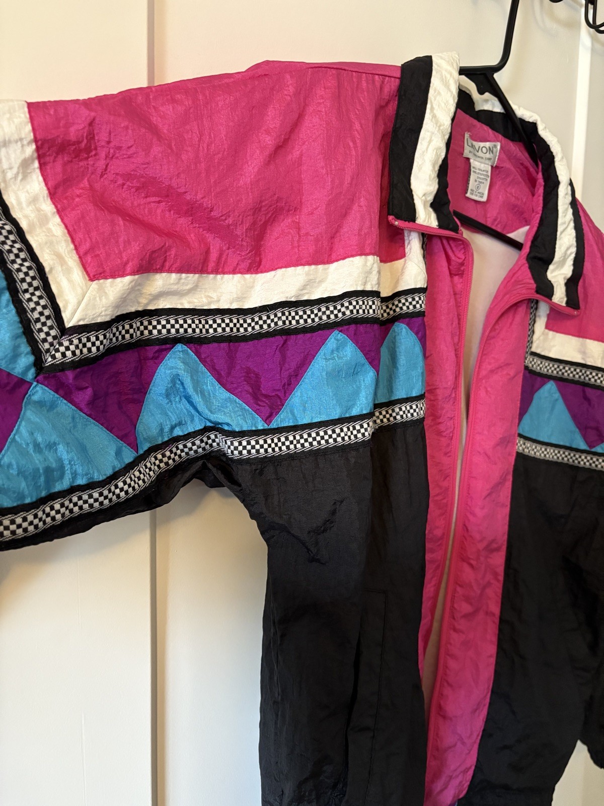 как выглядит Vintage 90s Lavon by Cheerful Corp Windbreaker Track Jacket Black/Pink Small фото