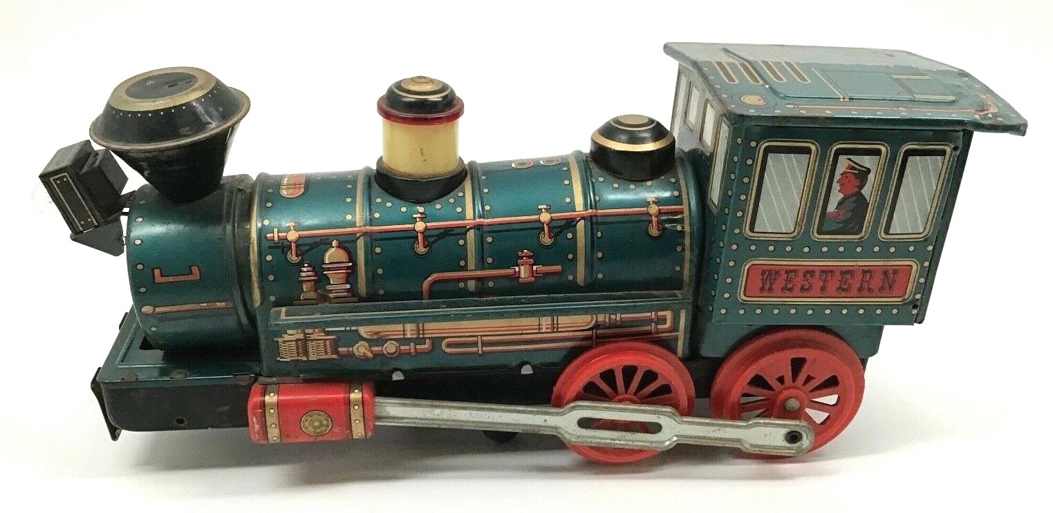 Vintage Litho Tin Toy Western Train Trade Mark Modern Toys Made in Japan
