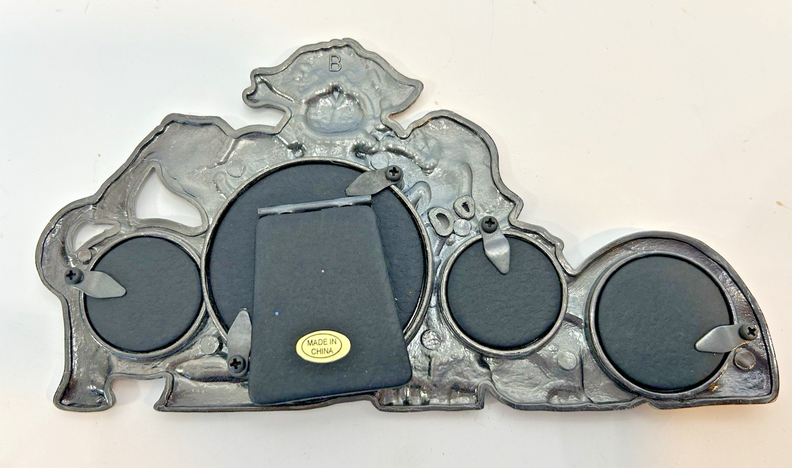 как выглядит Vintage Pewter Finish Dog Collage Photo Easel Frame 4 x 7 Holds 4 Pictures 2x2 фото