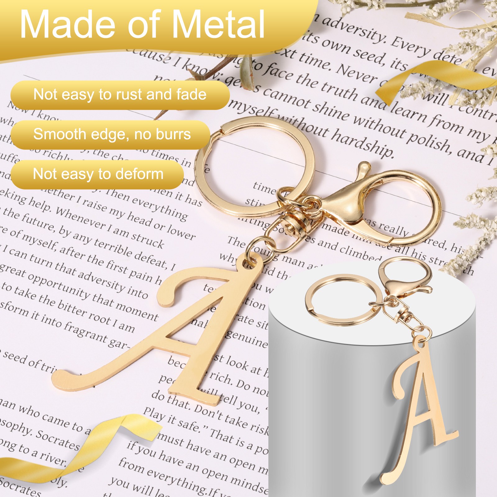 Gold Initial Letter Keychain, Stainless Steel A-Z Alphabet Keychains Letter P