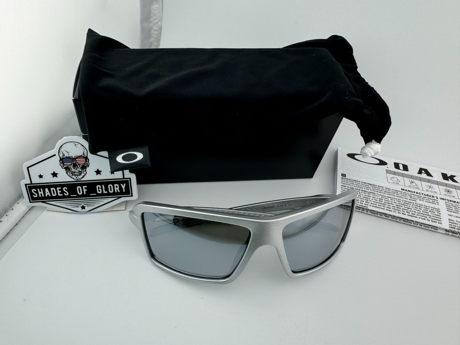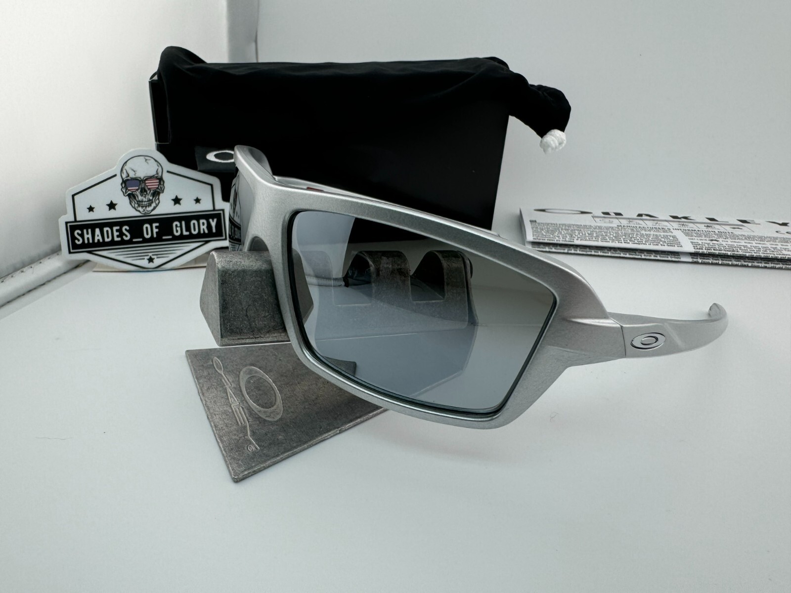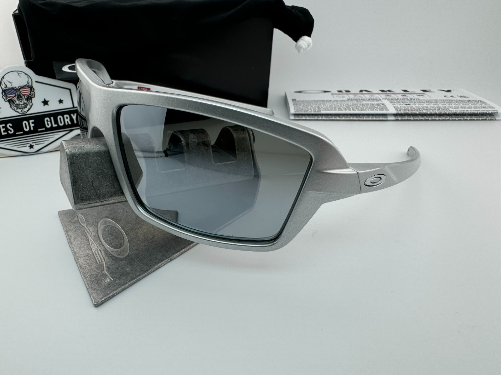 как выглядит OAKLEY CABLES X SILVER WITH AFTERMARKET SILVER POLARIZED GALAXY SUNGLASSES NEW фото