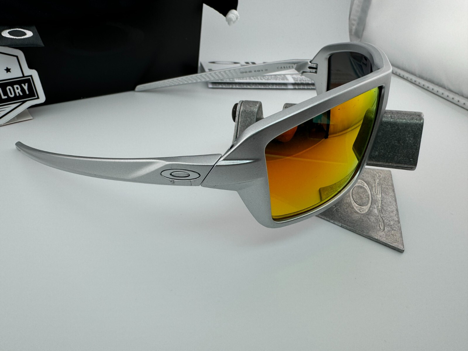 как выглядит OAKLEY CABLES X SILVER WITH AFTERMARKET FIRE RED POLARIZED SUNGLASSES NEW фото