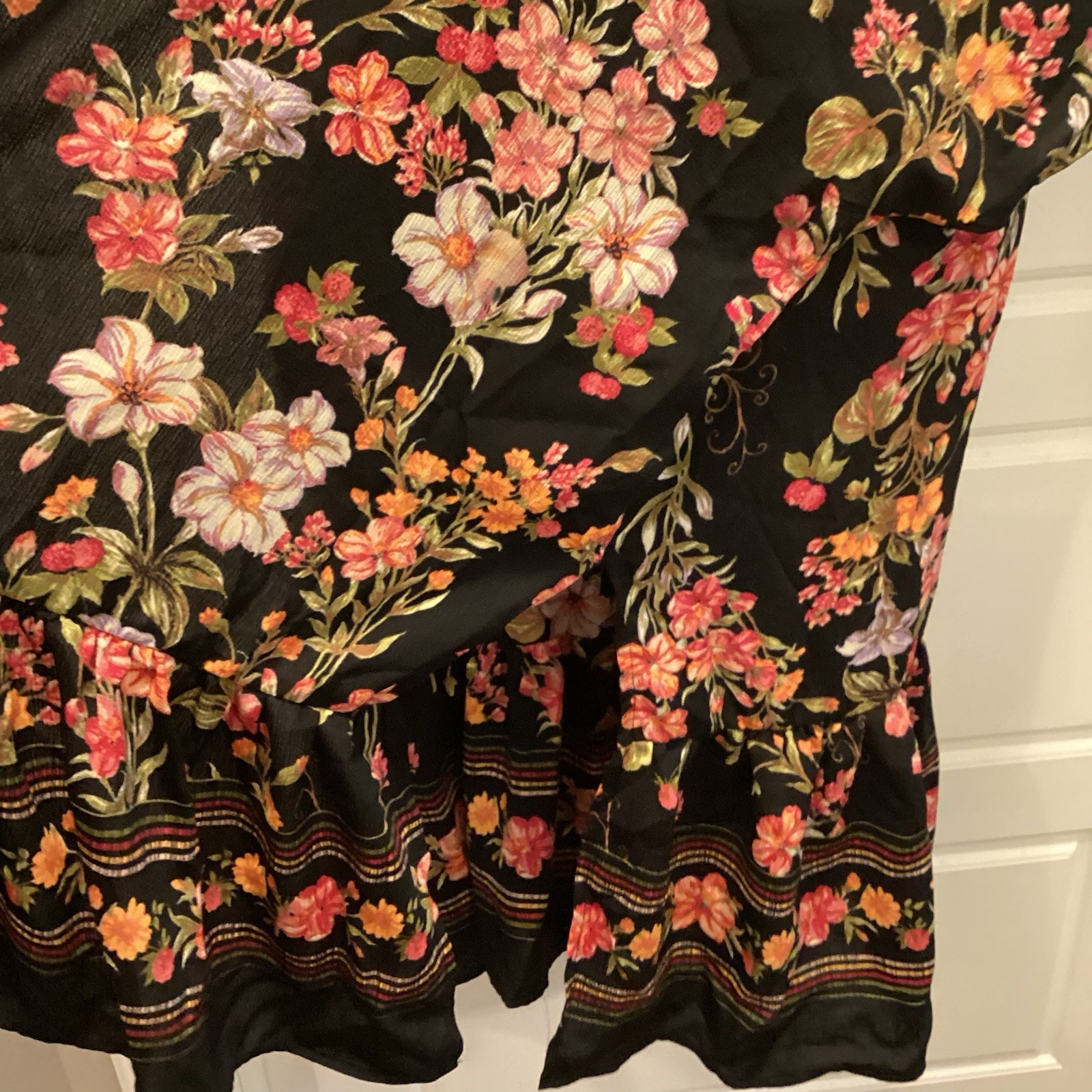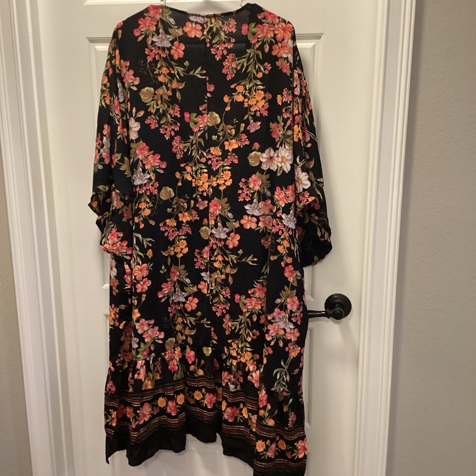 Black Floral Kimono Cardigan Duster WITH RUFFLE 2XL/3XL.