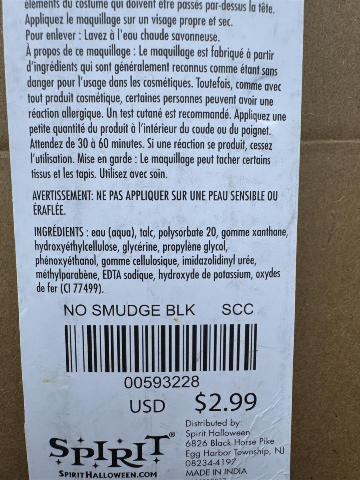 Spirit Halloween No-Smudge Cream Makeup black 1oz Brand New