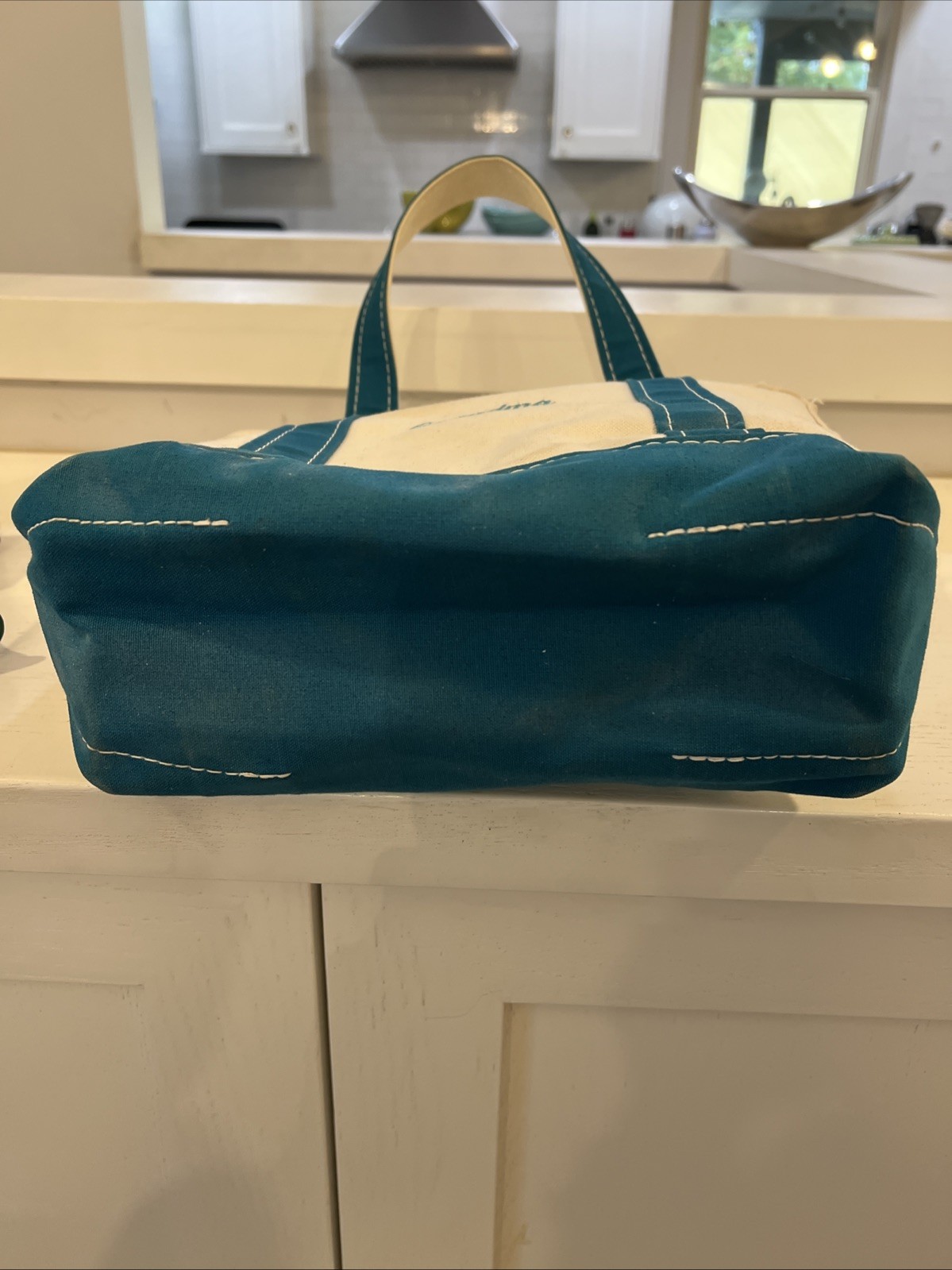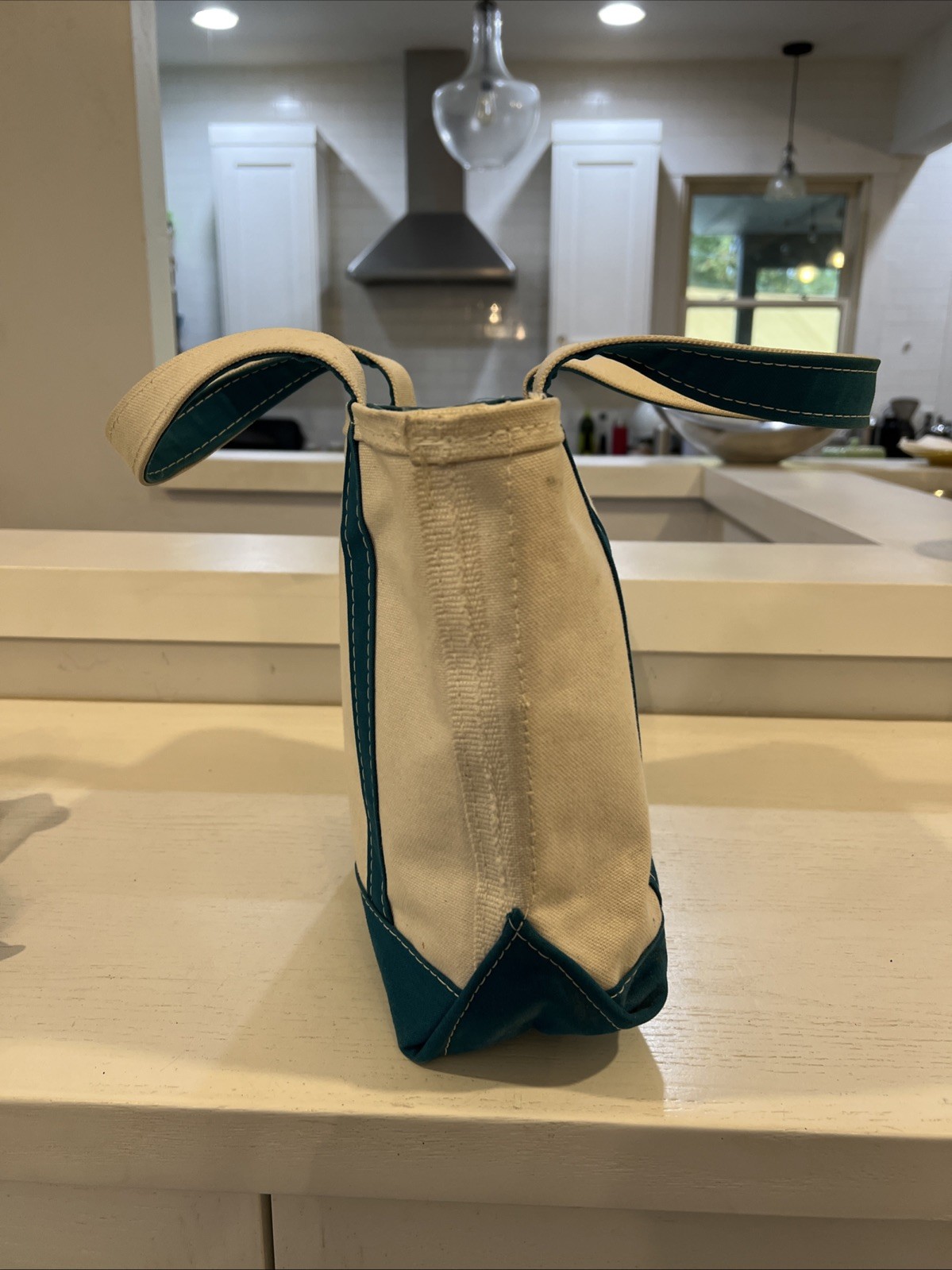 как выглядит Vintage L.L. Bean Boat And Tote Small Bag Teal Blue USA Canvas Cotton Zipper фото