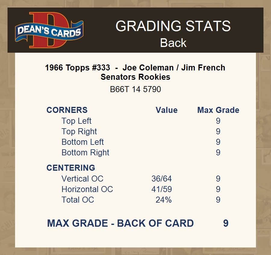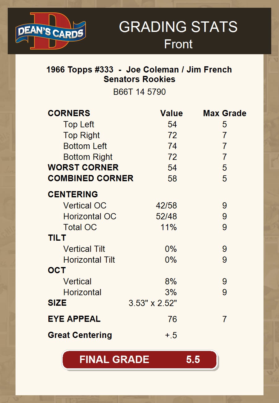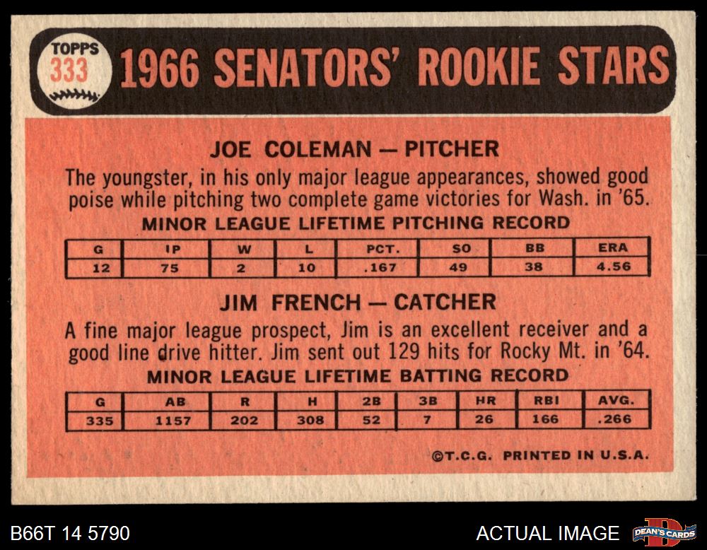 • 1966 Topps 333 Joe Coleman / Jim French Senators RCs RC 5.5 - EX