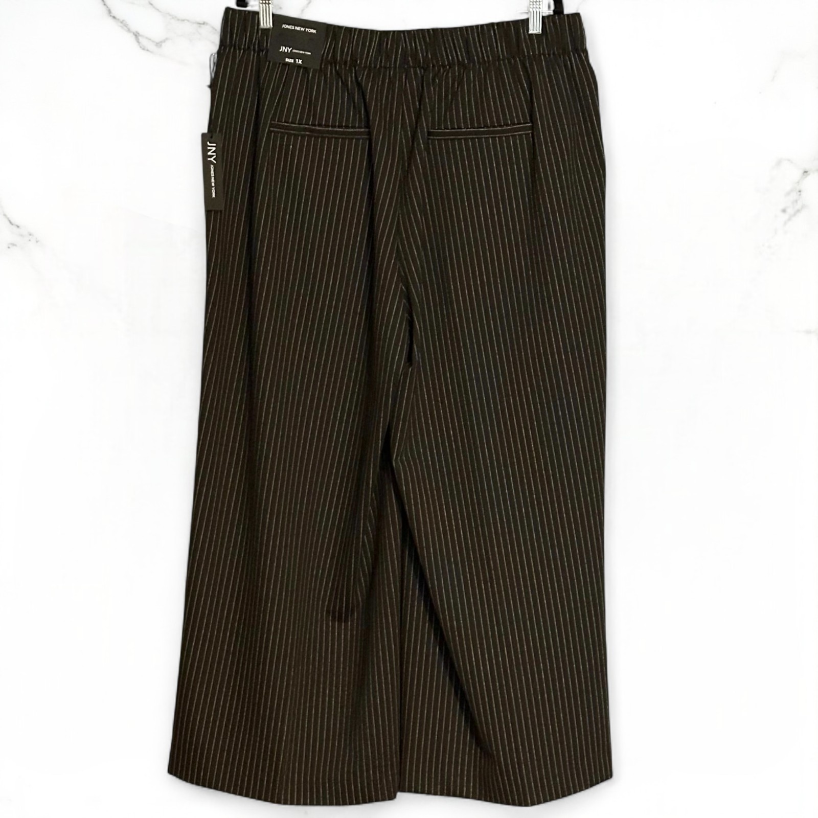 Jones New York Pull On Wide Leg Pants Sz 1X Black Pinstripe Stretch Pockets NWT