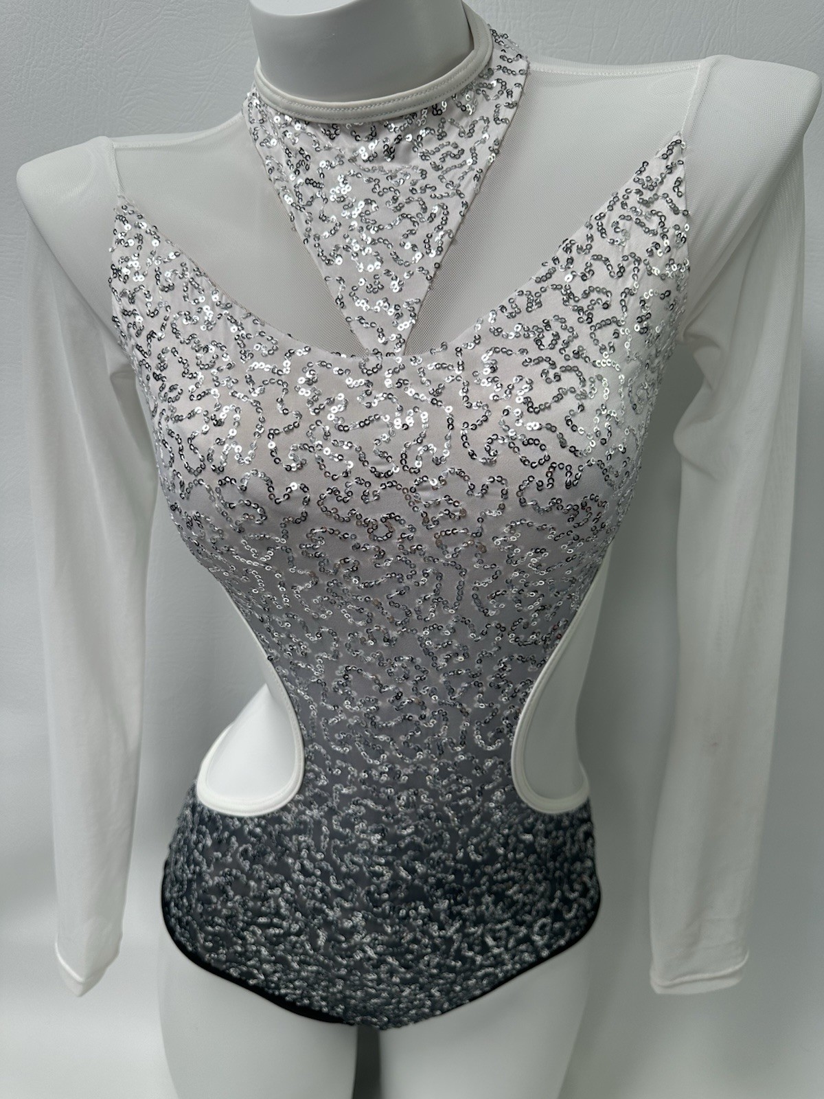 WEISSMAN Dance Leotard Elite Ombr Sequin Cutout Costume Size LC SQ11113