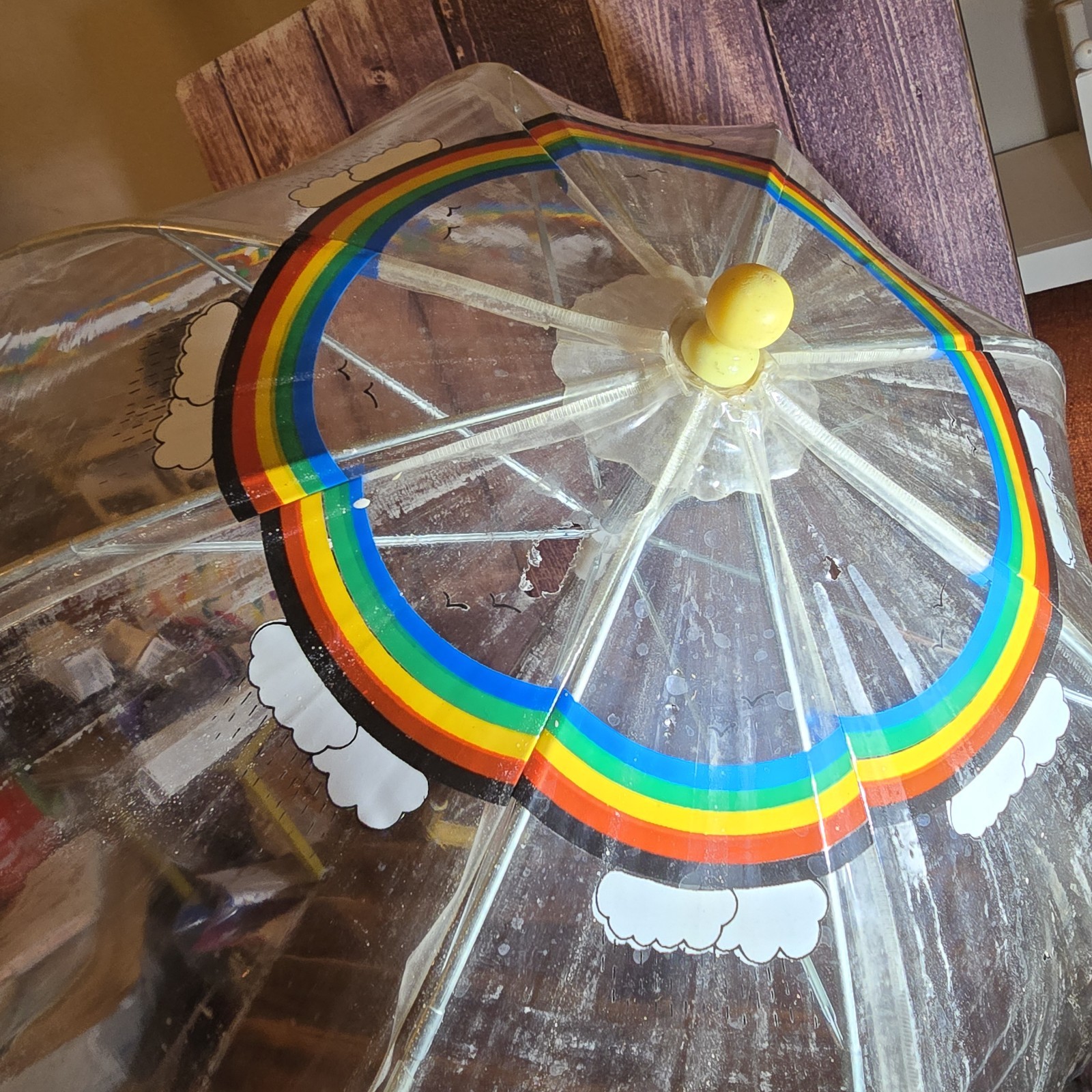 • Vintage Snoopy Let It Rain Clear Dome Umbrella Rainbow Peanuts 1958 United