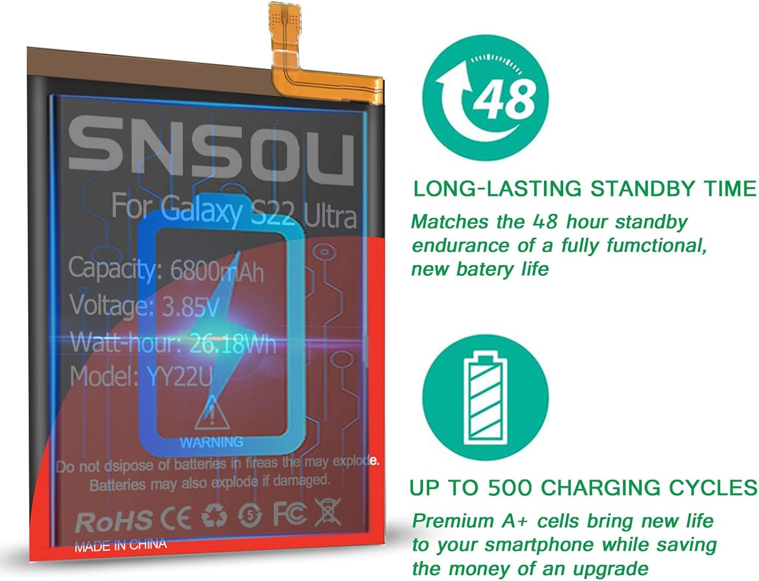 Galaxy S22 Ultra Battery 2024 Upgraded 6800mAh EB BS908ABY Li Polymer Battery