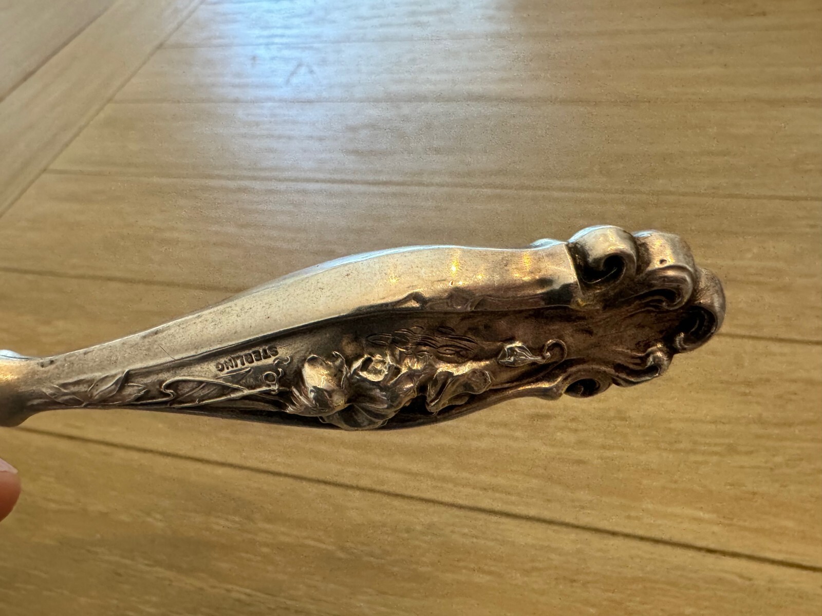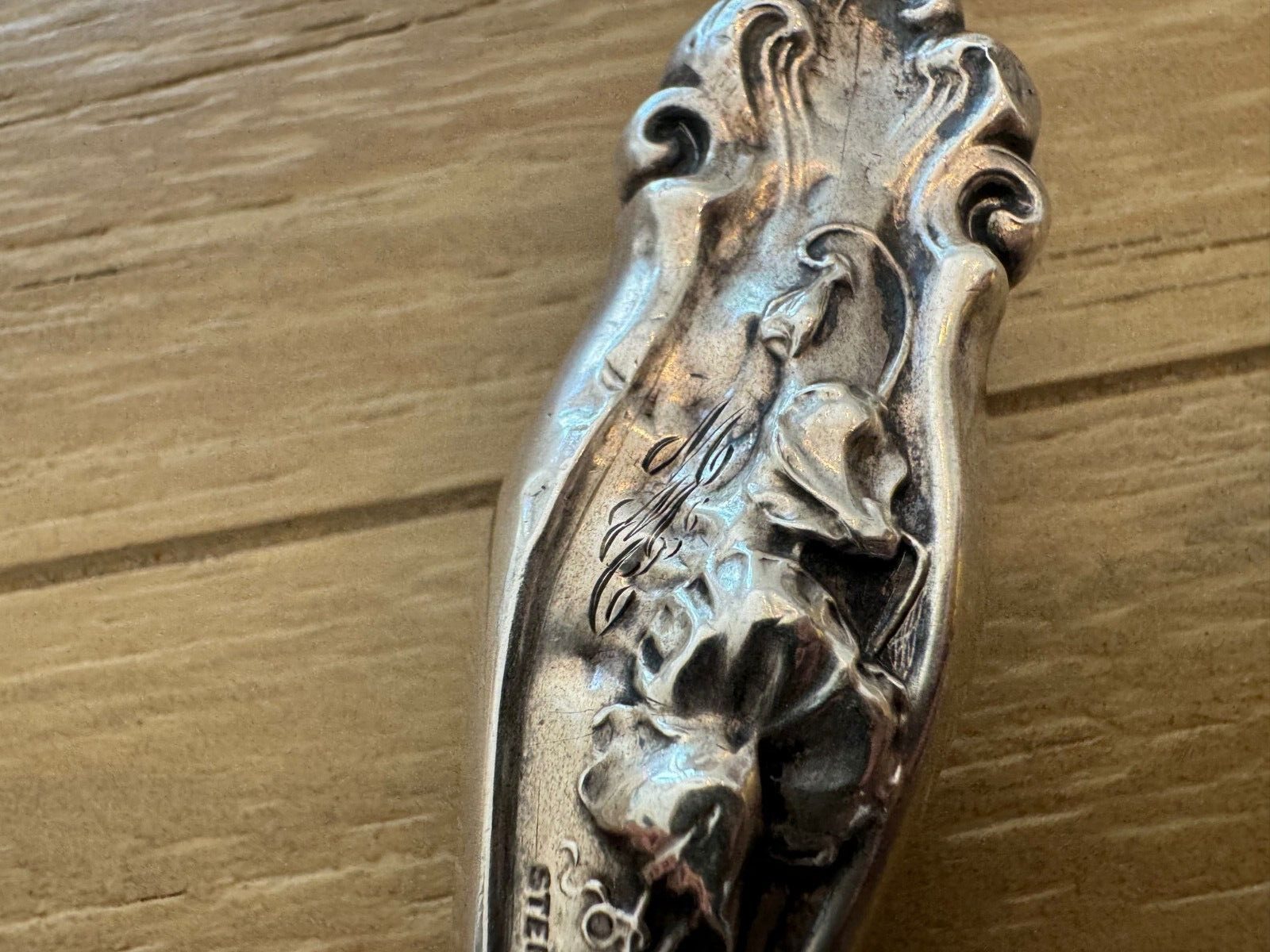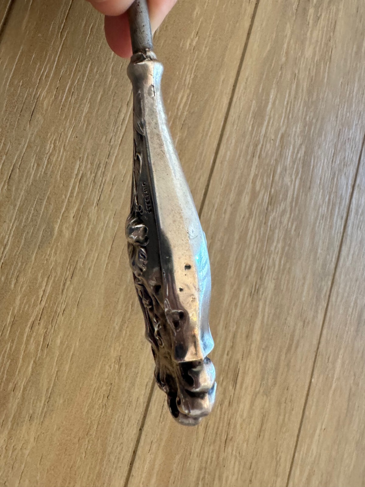 как выглядит Antique Sterling Silver Handle Button Hook Art Nouveau Flower Design Monogram фото
