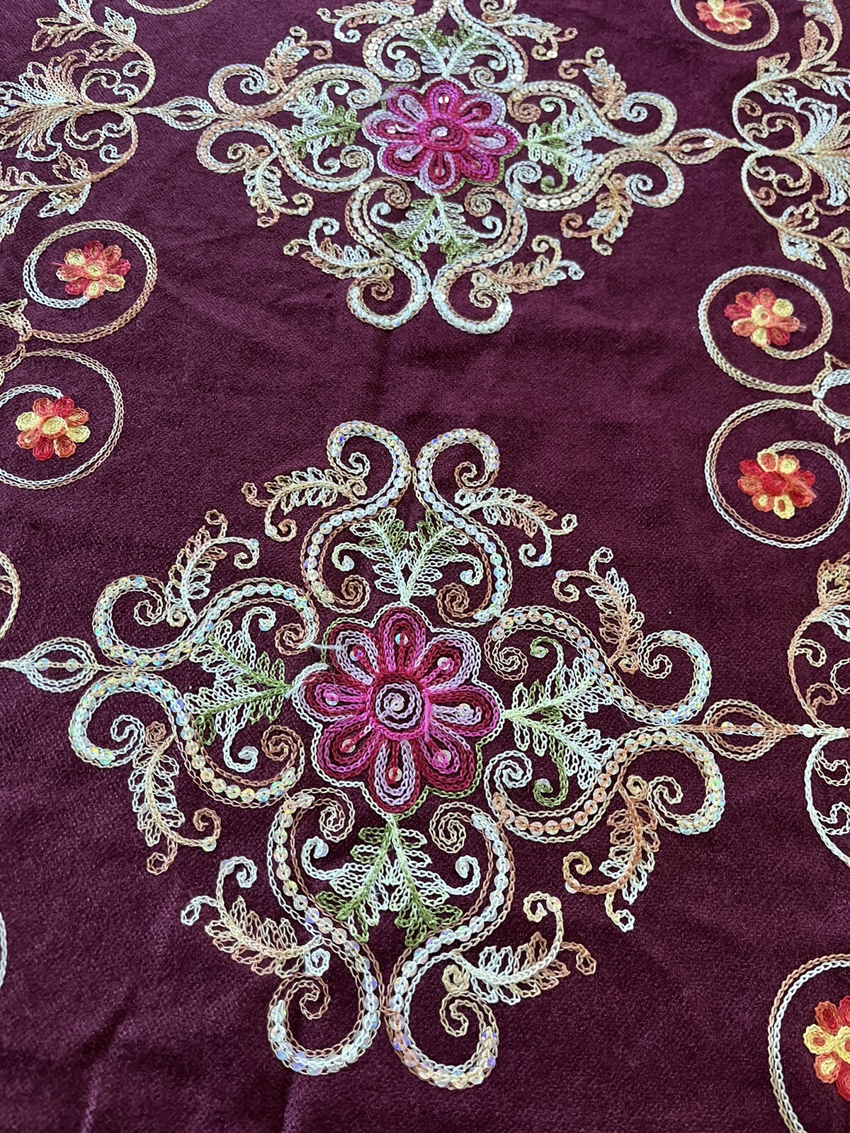 как выглядит Embroidered Long Scarf Sequins Maroon Burgundy 26 X 66 Floral India Style фото