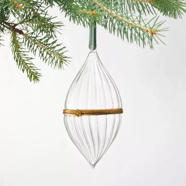 Hinged Fluted Tear Glass Christmas Tree Ornament Hearth Hand By Magnolia- NWT
