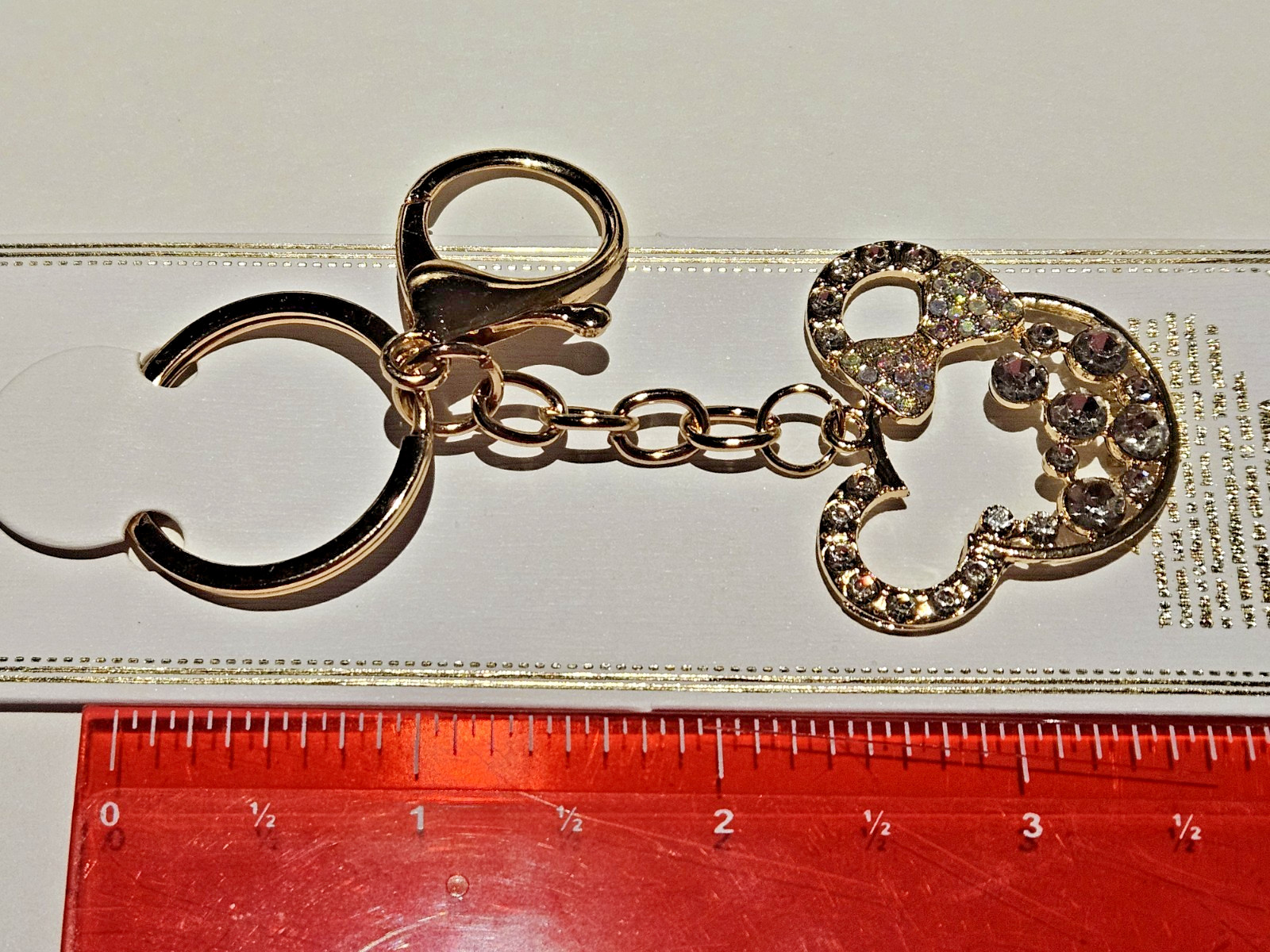 как выглядит Minnie Mouse Rhinestone Keychain Bag Charm Gold Tone New in Package Unbranded фото
