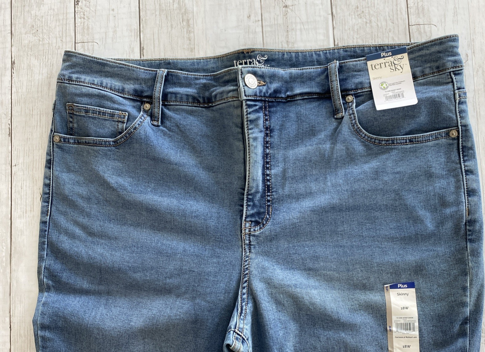как выглядит Terra Sky Womens Plus Core Denim Skinny Jeans Medium Wash High Rise 18W фото