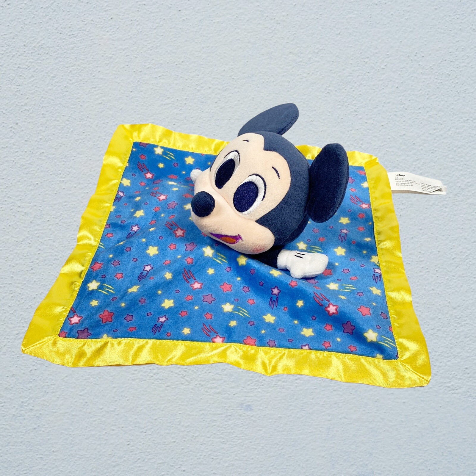 Disney Mickey Mouse Baby Lovey Plush Rattle Toy Security Blanket Blue Yellow