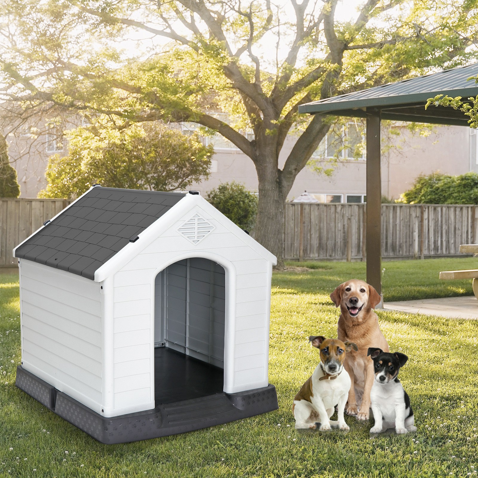 как выглядит Outdoor Dog House Grey Roof for Small to Medium Sized Dog Waterproof Dog Kennel фото