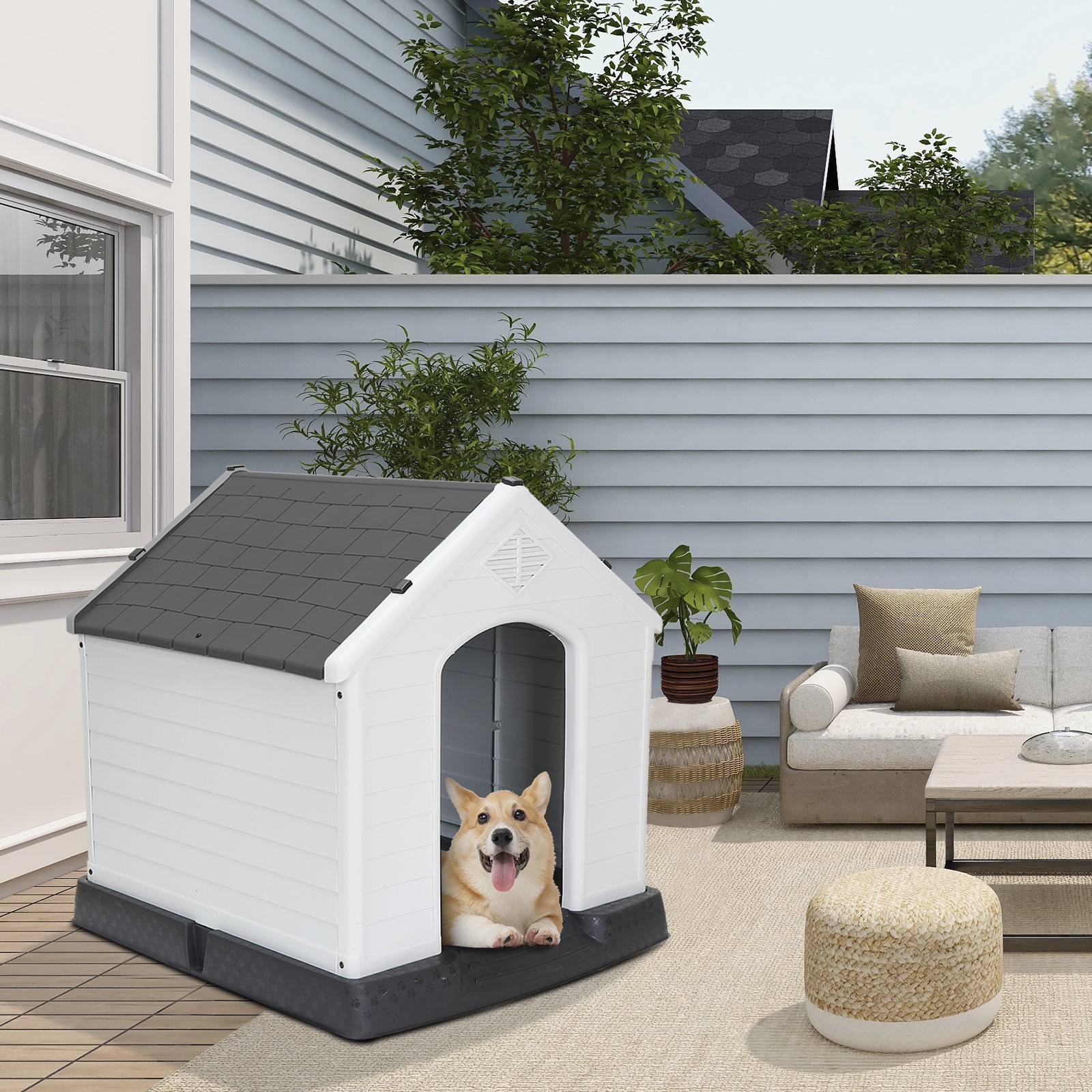 Outdoor Dog House Grey Roof for Small to Medium Sized Dog Waterproof Dog Kennel
