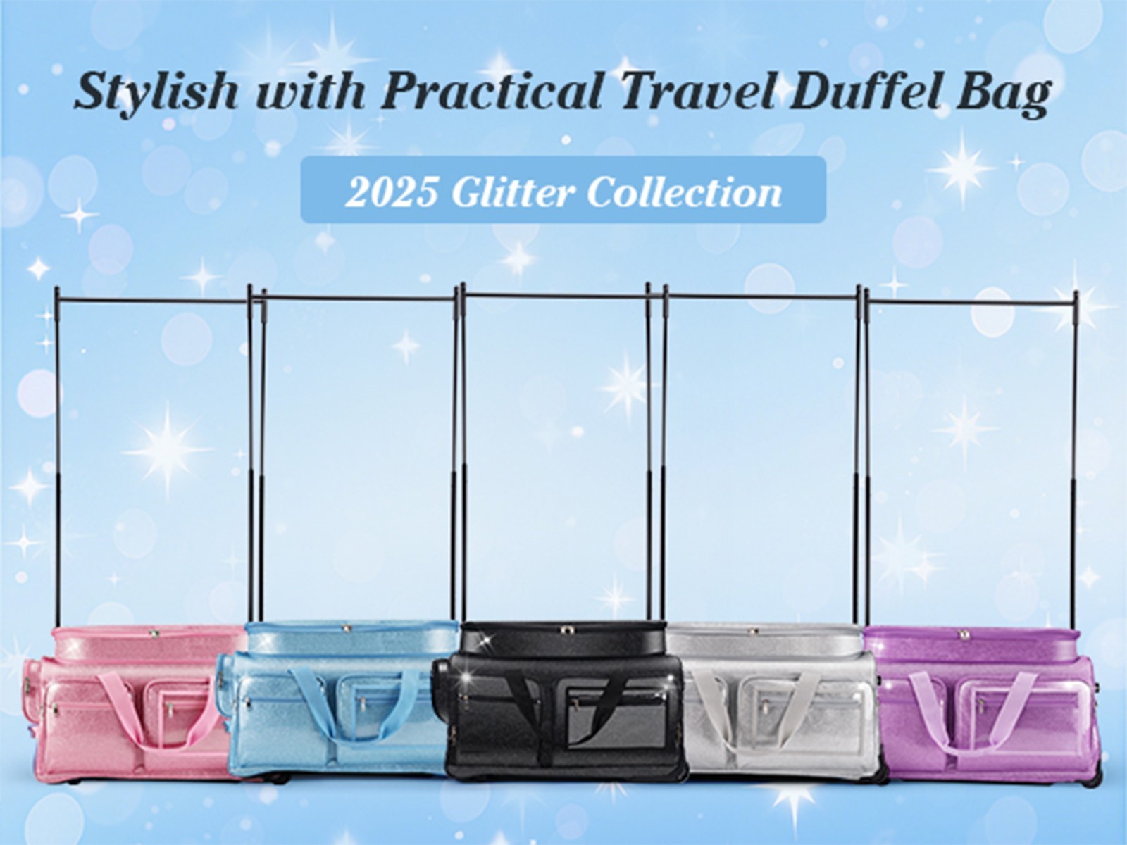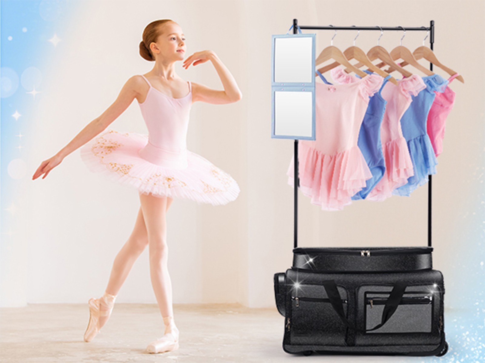 Dance Bag with Garment Rack 28 Glitter Black Dance Costumes Rolling Bags