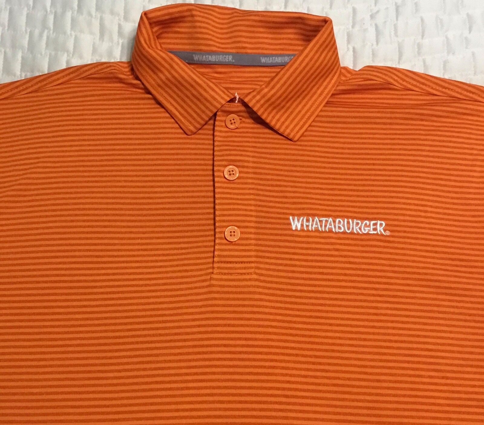 Whataburger Employee Crew Uniform Polo Shirt Mens XL Orange Striped Logo EUC