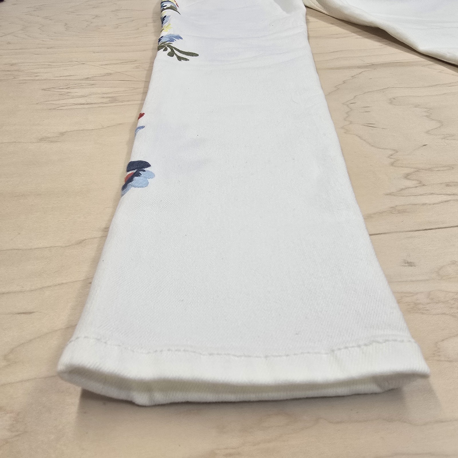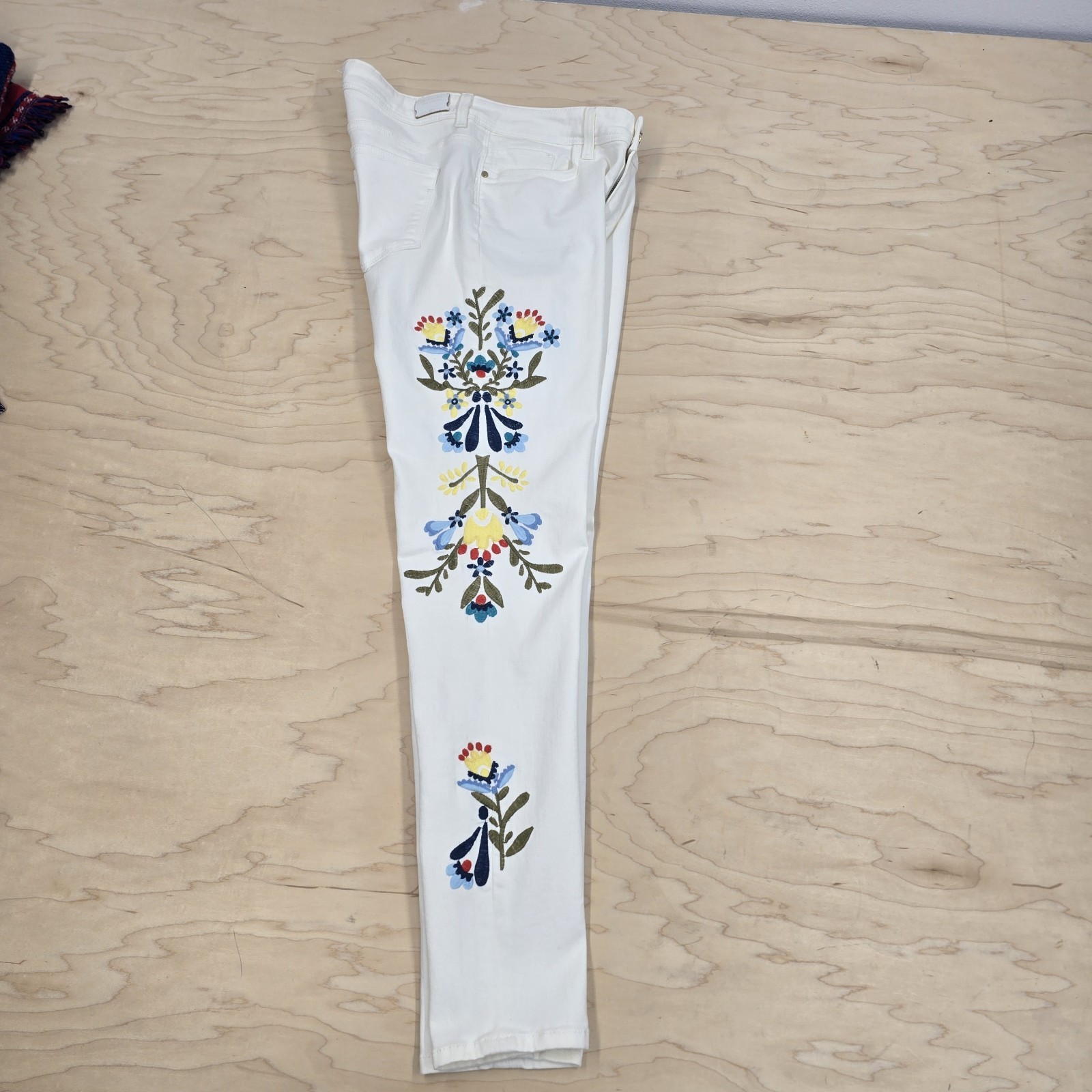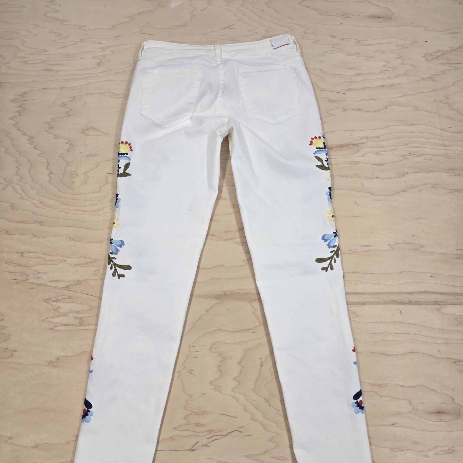 Womens Zara Basic Z1975 White Jeans Floral Embroidery Design Size 6 Inseam 28