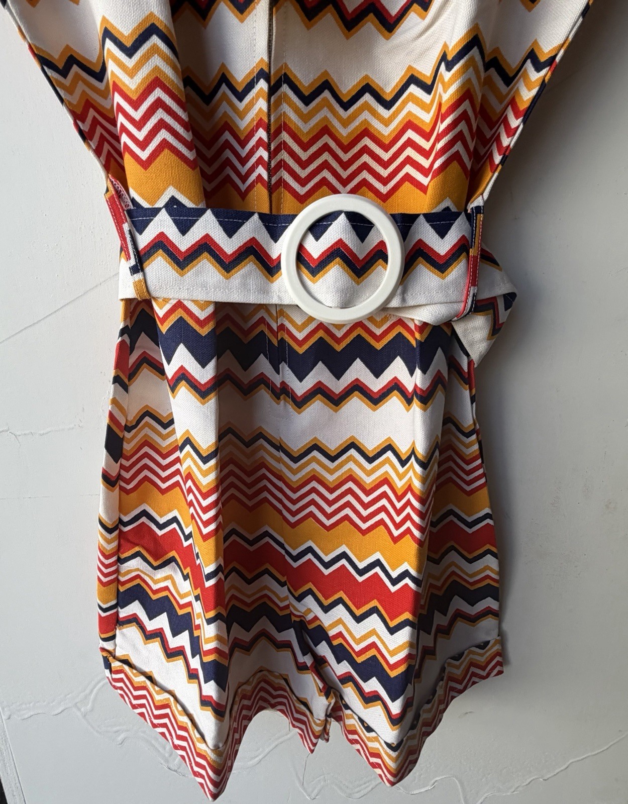 как выглядит VINTAGE NEW 1960s Chevron Print Romper with Belt Size 16 Fits like 8-10 фото