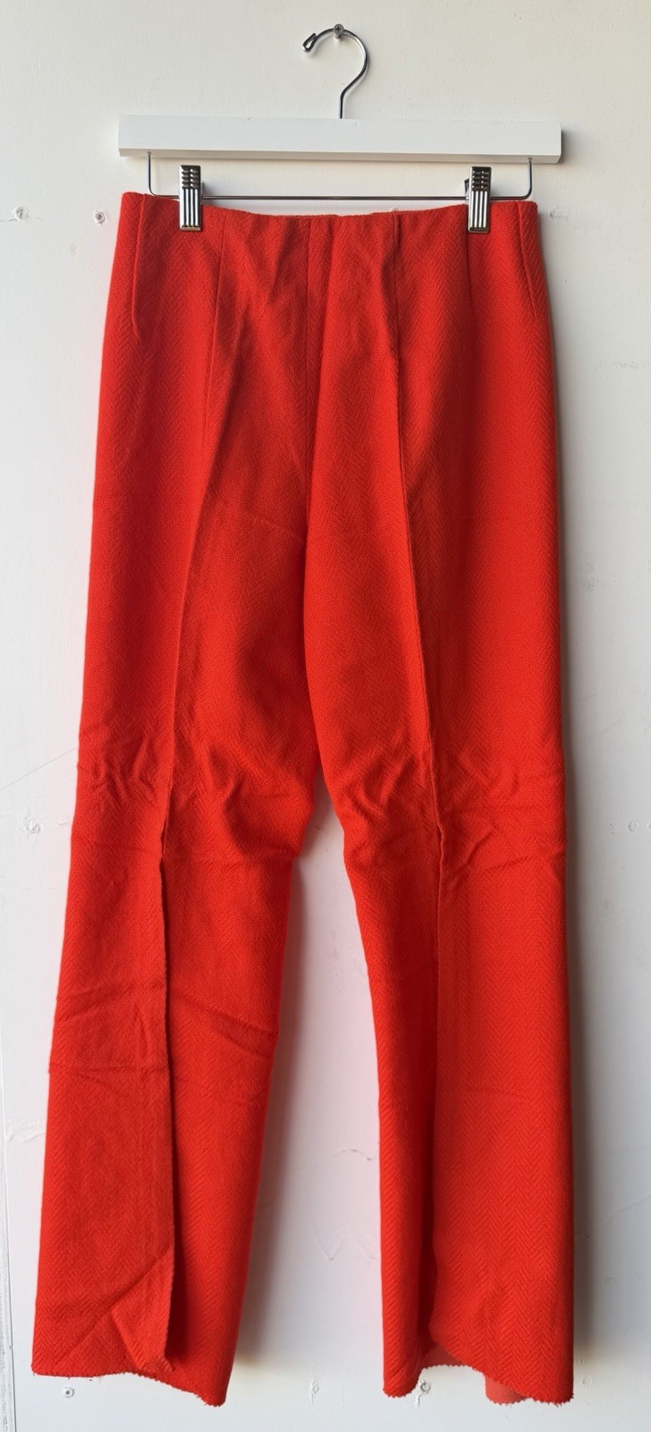VINTAGE NEW 1960's Red Herringbone Hidden Zip Trousers with Slit in Leg