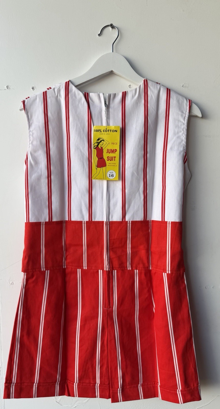 VINTAGE NEW 1960's Red/White Striped Waist Tie Romper Size 16 Fits like 8-10