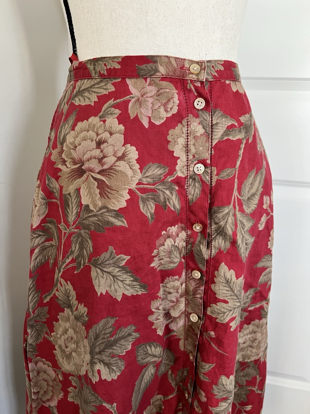 Vintage Ralph Lauren Red Floral Midi Skirt Size 6 Runs Small EUC