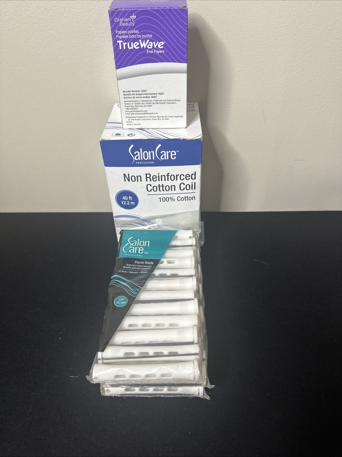 Lot SalonCare 40 Cotton Coil, 36- 5/8 White Perm Rods TRUE WAVE END PAPERS