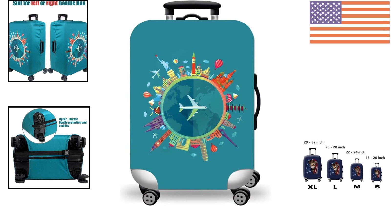 Особенности: Washable, Durable, Elastic, Luggage cover protector, High laminating, Highly elastic, Shaped like yoga tenacity, Super thickness, Increase abrasion resistance, Protects suitcase against dirt, Unique side opening design, Zippers for side handles, Zipper at bottom, Elastic buckle at bottom, Easy to fit, Easy to remove, Fashion design, Colorful cover