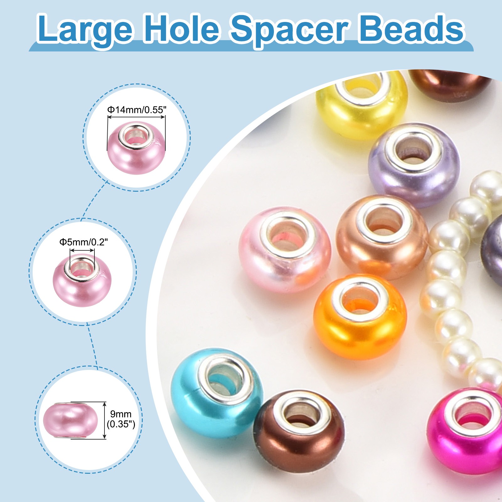 100 Pcs European Large Hole Beads 14mm Bulk Beads for DIY, Pink