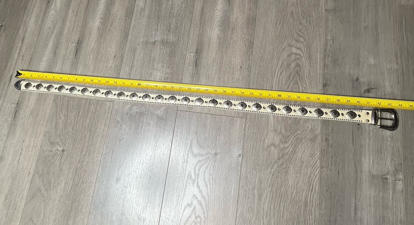 Vtg Sand castle USA leather Silver Studded Belt Boho Biker Western Native