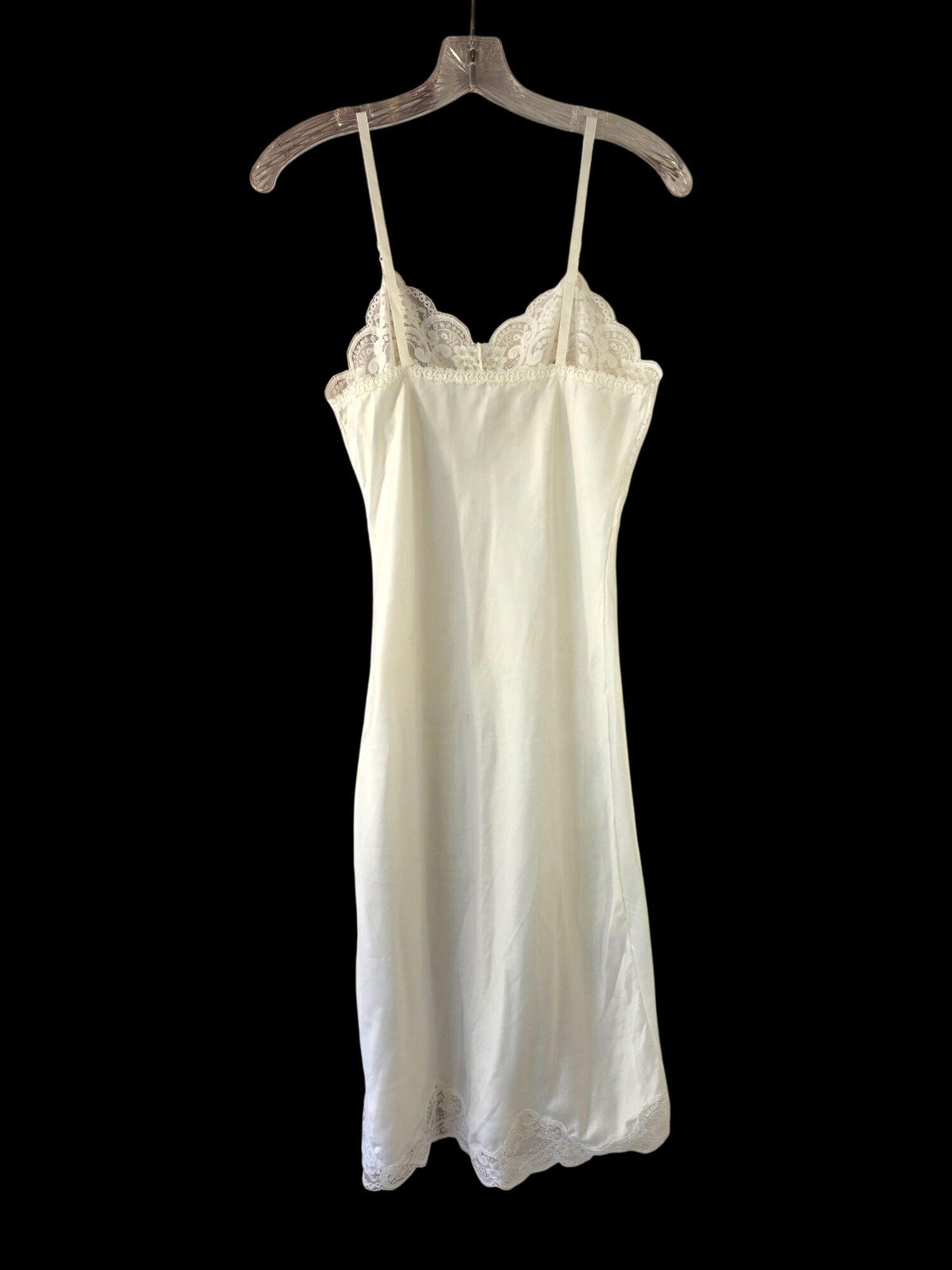 Wonder Maid 60s Full Slip Sz 34 White Lace Non-Cling Nylon Blend USA Union Made
