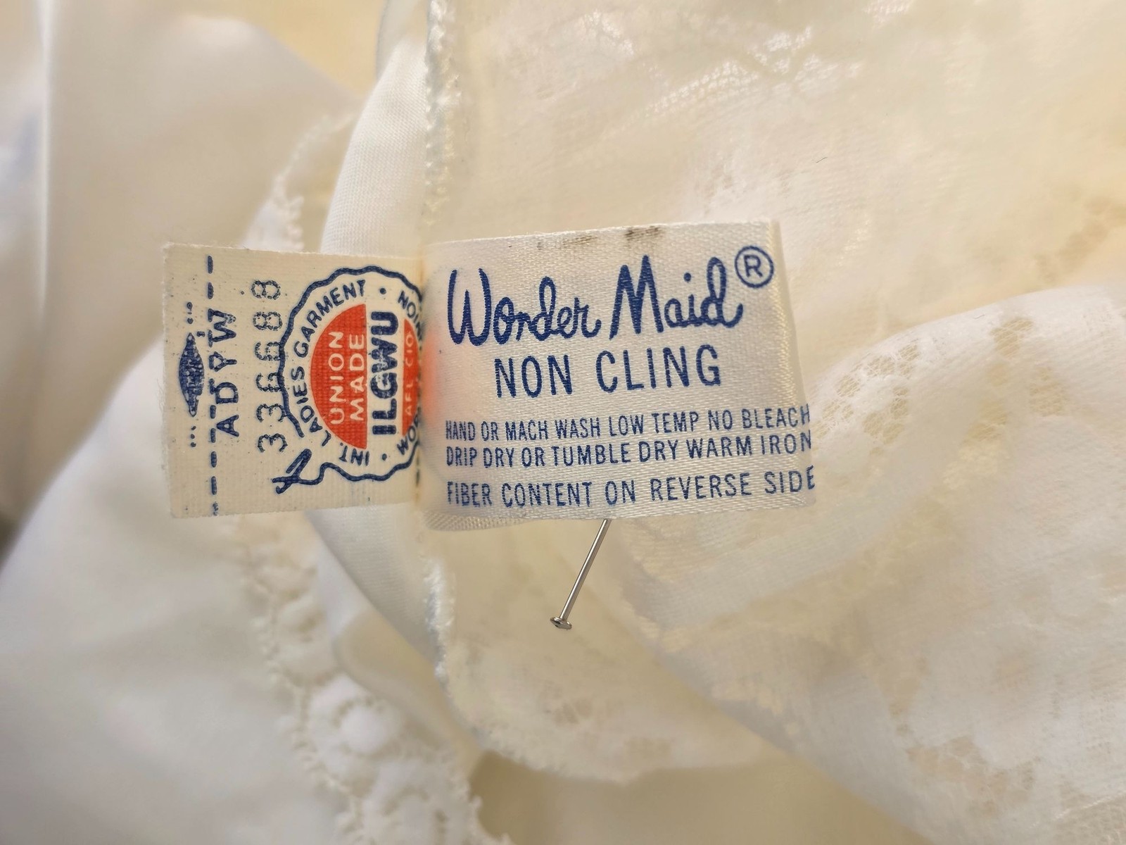 как выглядит Wonder Maid 60s Full Slip Sz 34 White Lace Non-Cling Nylon Blend USA Union Made фото