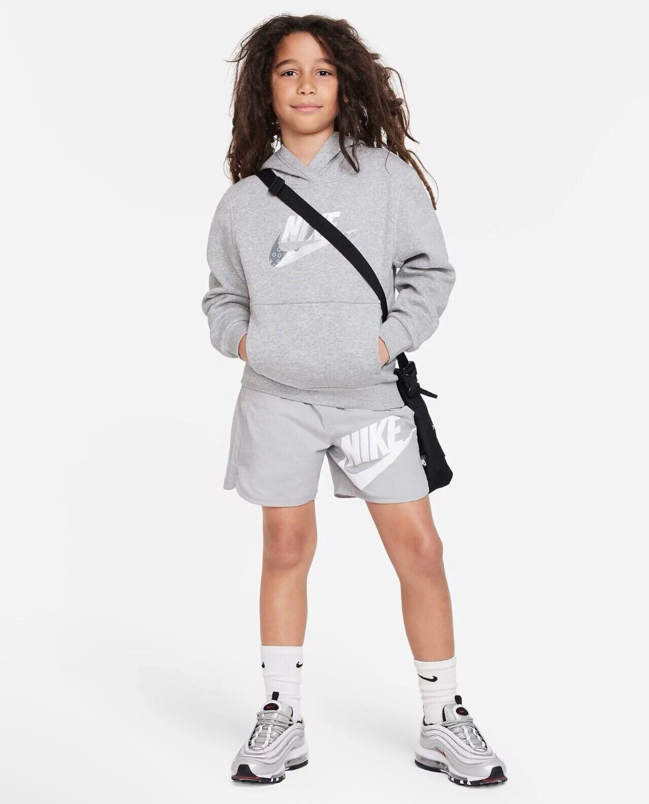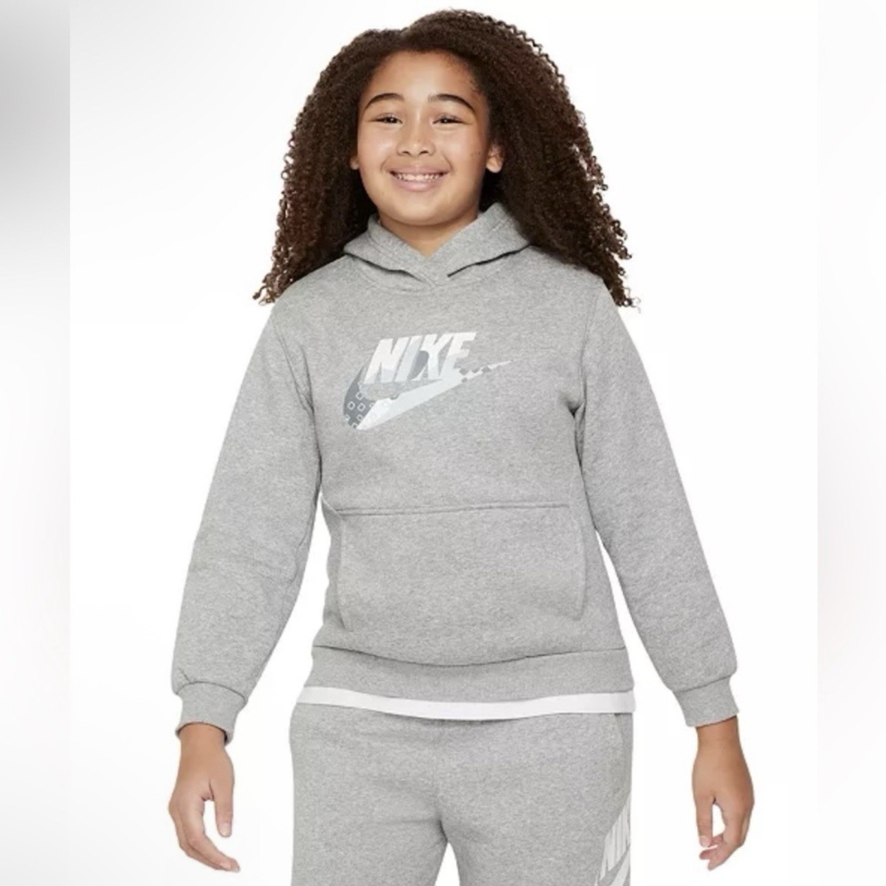 как выглядит Nike Unisex Jr Kids Cotton Fleece Sweatshirt Art FD3170-063 Gray - Sz L фото